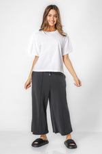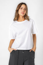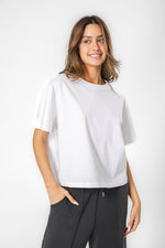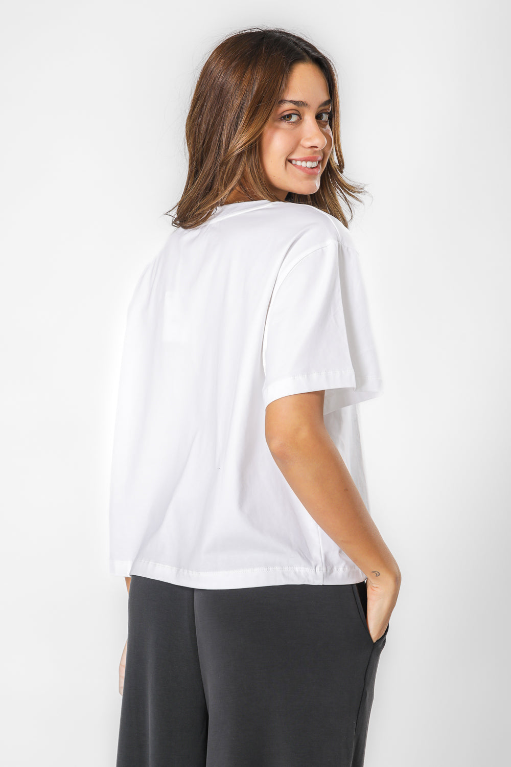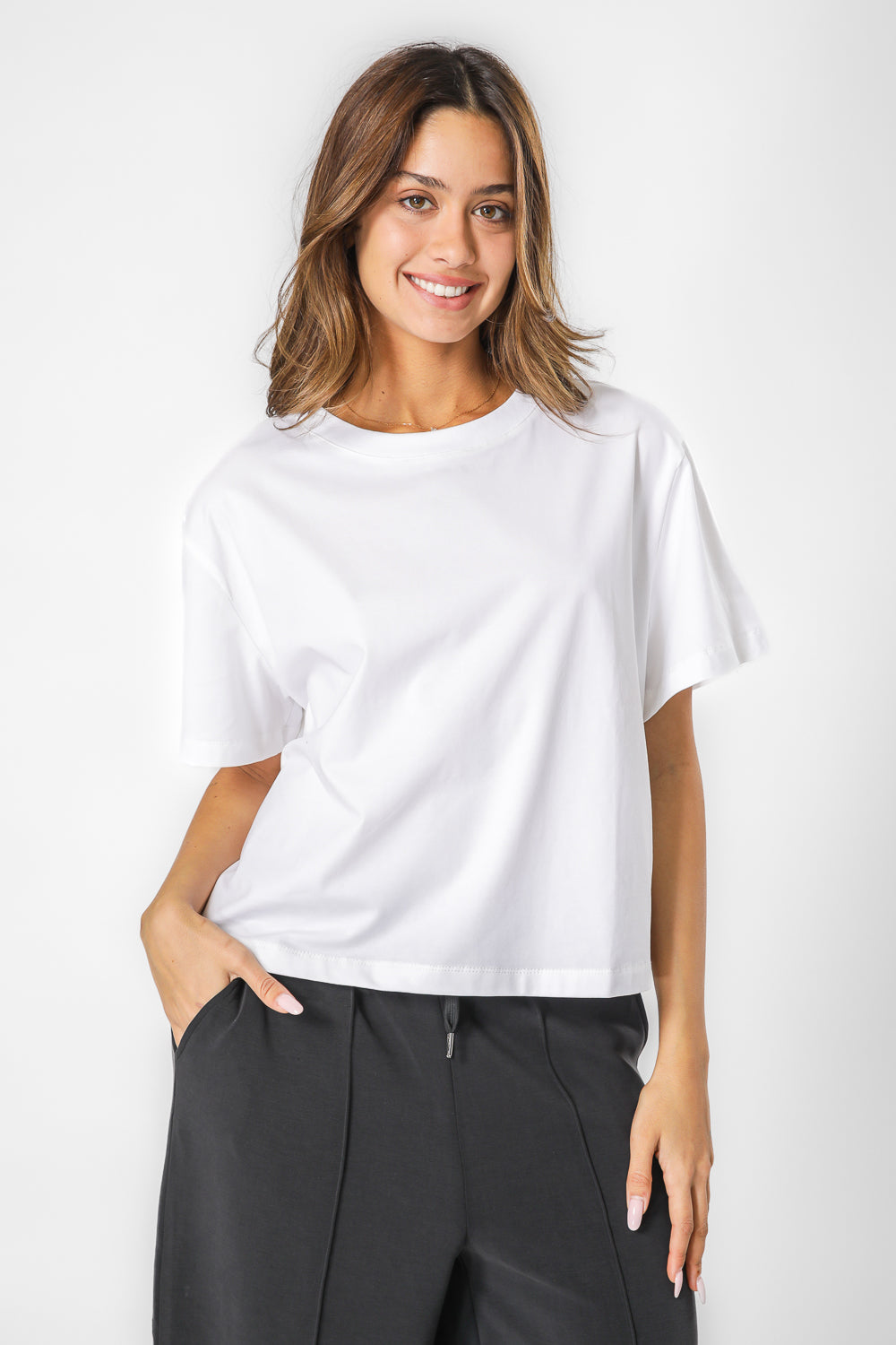 חולצת קרופ קצרה צווארון עגול בצבע לבן