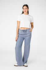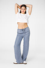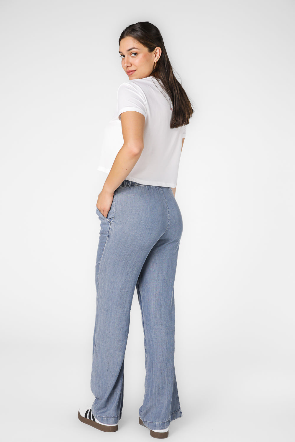 מכנסיים ארוכים לנשים מבית המותג DELTA העשוי מבד אריג רך נעים, בגזרה ישרה רחבה עם גומי במותניים, שרוכי קשירה וכיסים בצדדים.