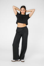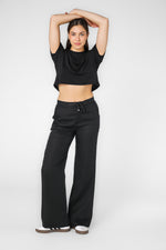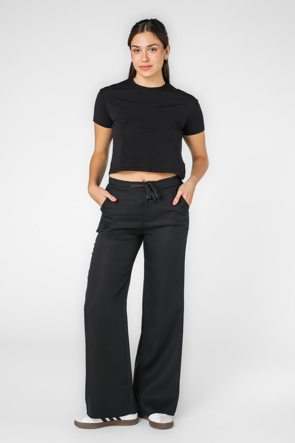 מכנסיים ארוכים לנשים מבית המותג DELTA העשויים מבד אריג נעים, בגזרת רגל ישרה ובמראה מחוייט, עם סגירת קרס ורוכסן, שרוכי קשירה וכיסים בצדדים.