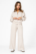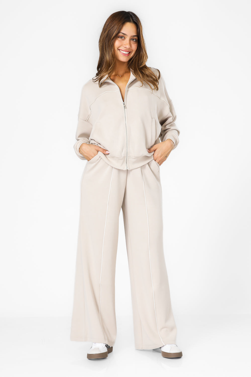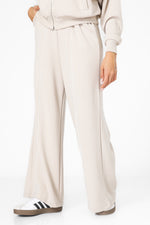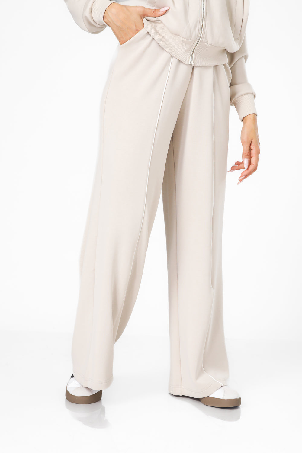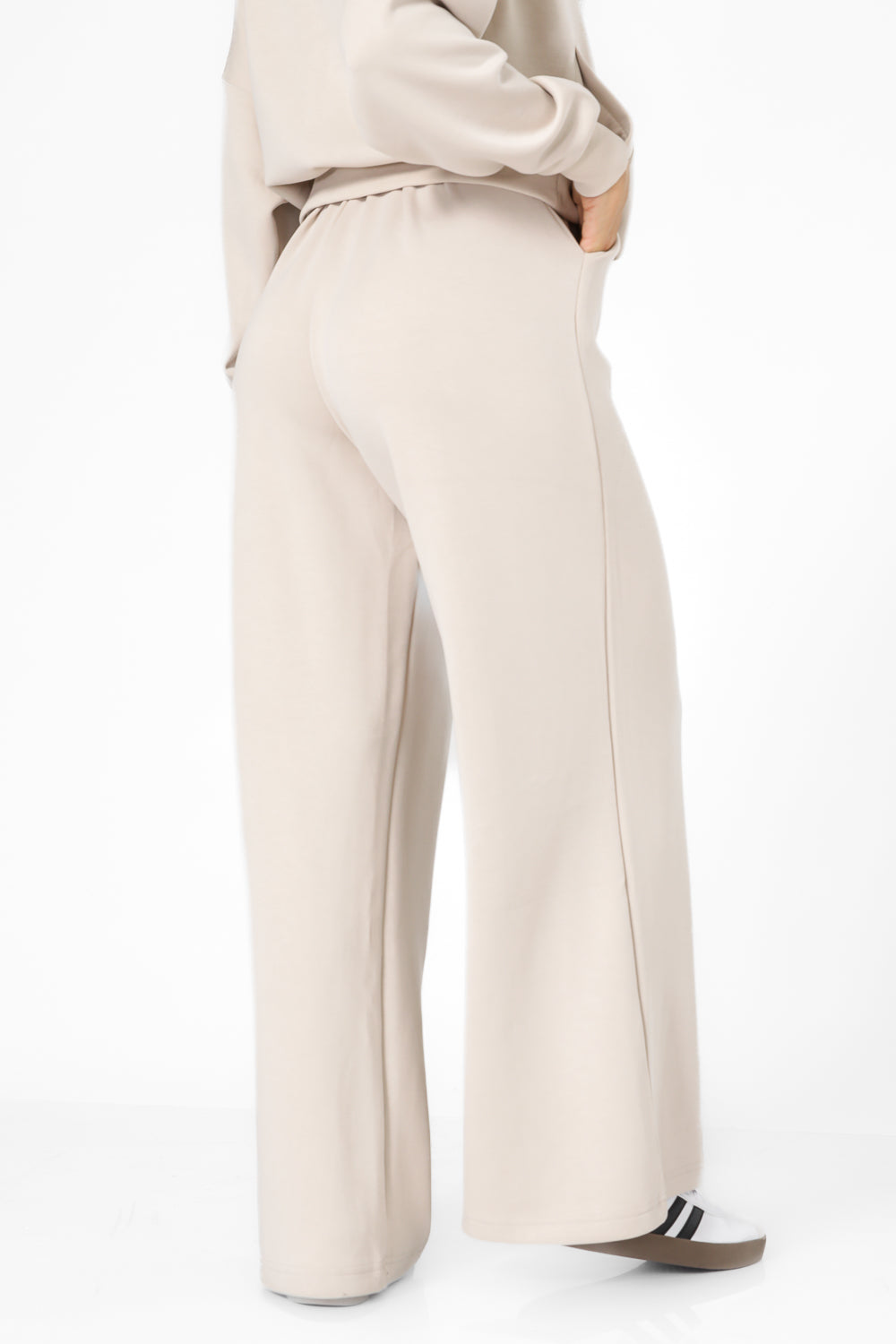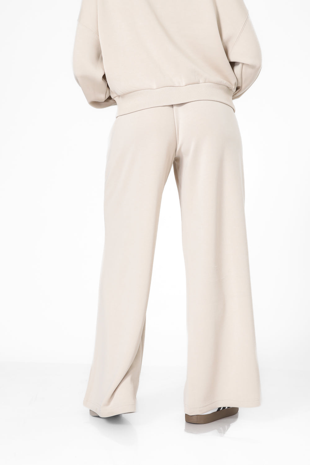 מכנסיים ארוכים בגזרה רחבה בצבע בז'