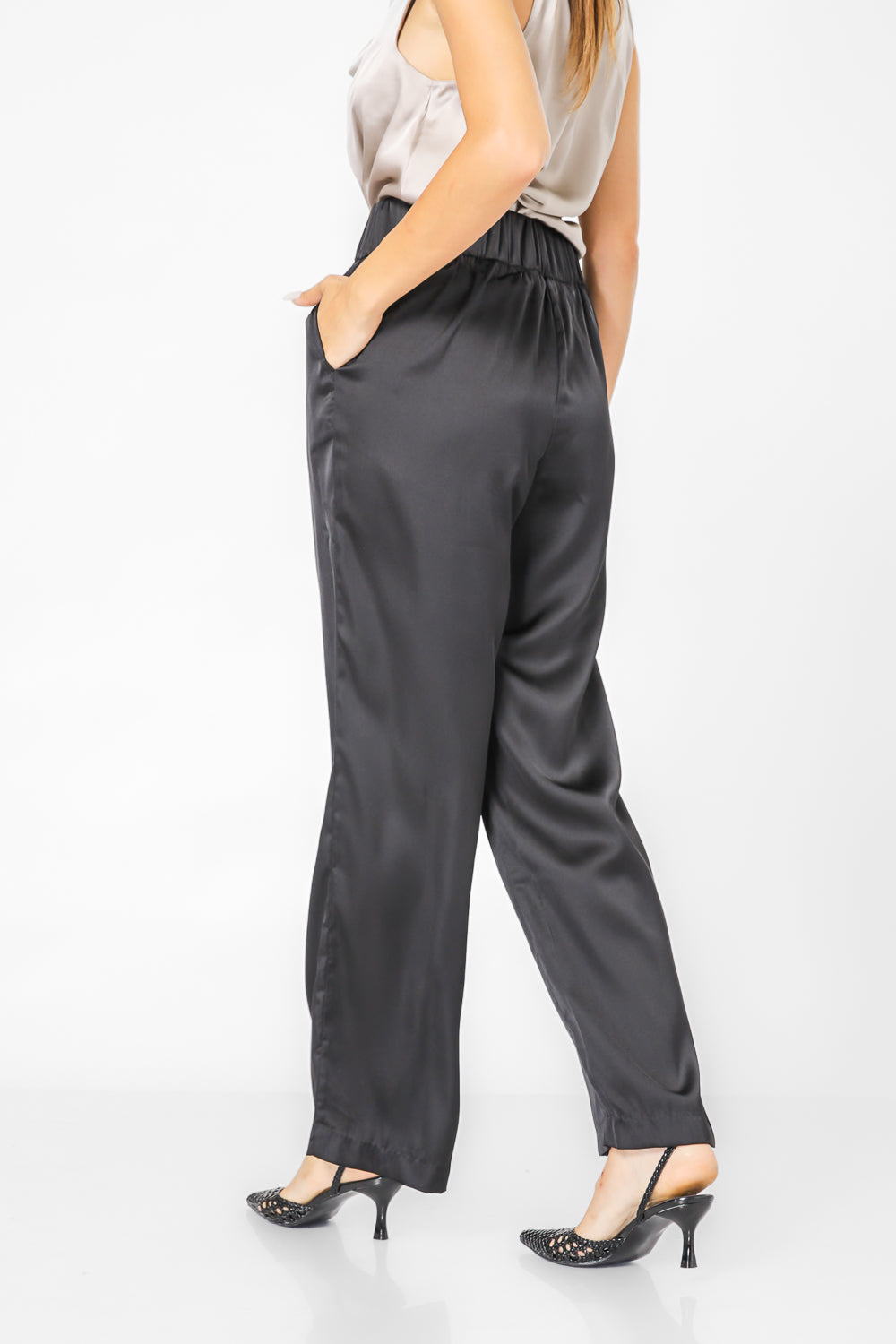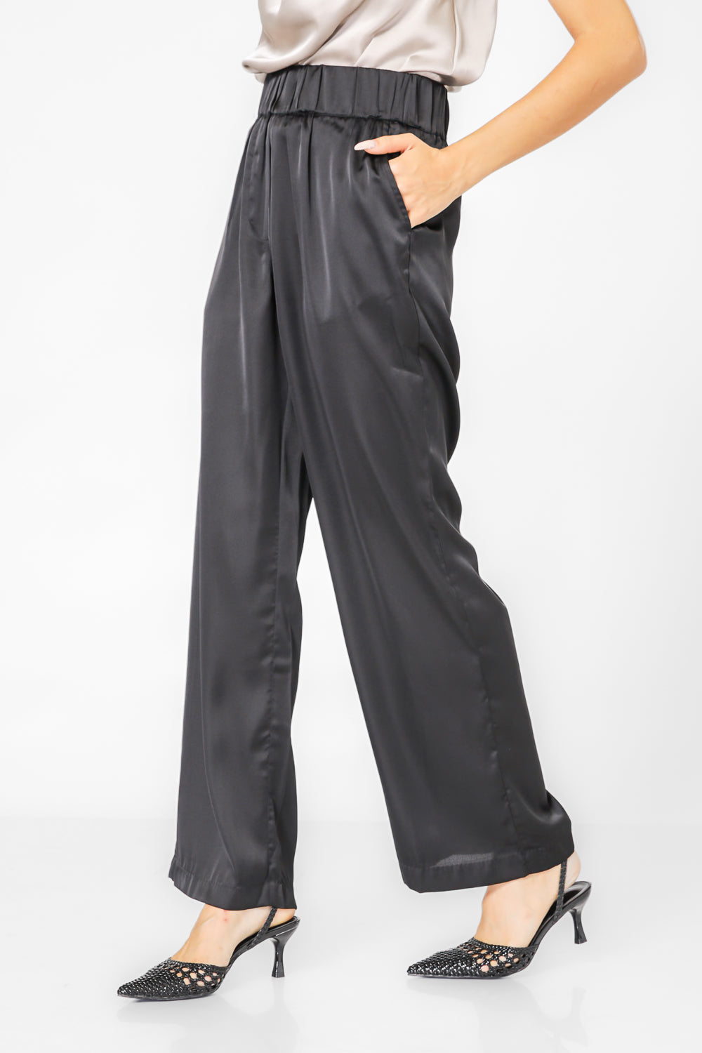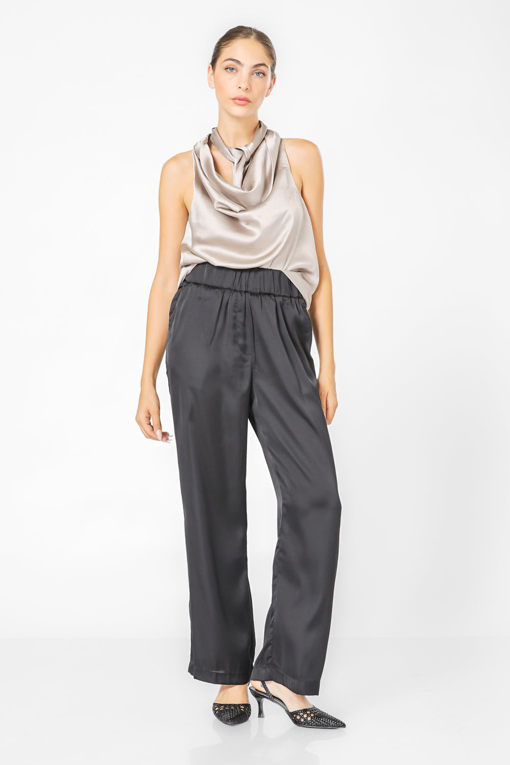 מכנסיים במראה סאטן גזרה רחבה