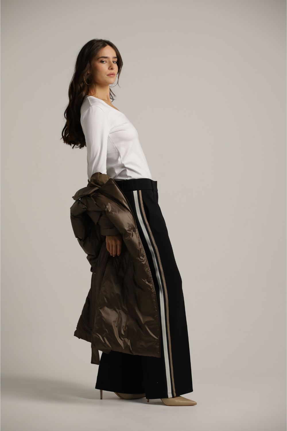 מכנסיים רחבים בסגנון מחויט עם פסי צד | קנת קול