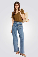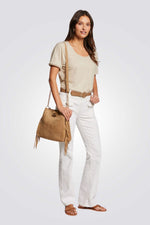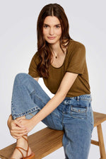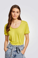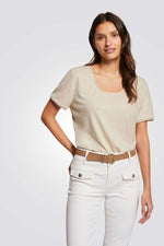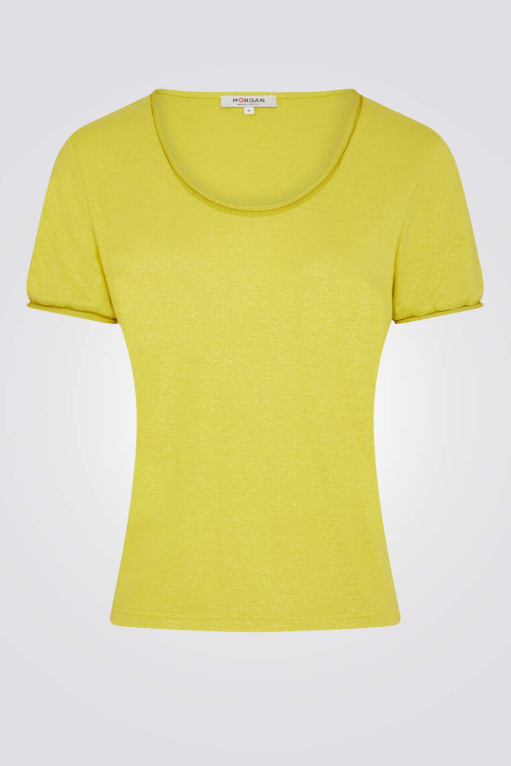 טישירט מבית המותג MORGAN עם שרוולים קצרים, בעלת גזרה ישרה עם צווארון עגול, מתאימה לימי הקיץ החמים.