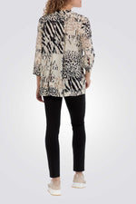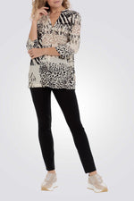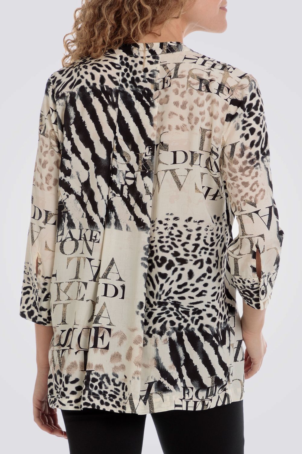 חולצה בהדפס בעלי חיים, צווארון V, שרוולים באורך 3/4 עם חפתים מכופתרים.