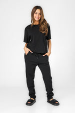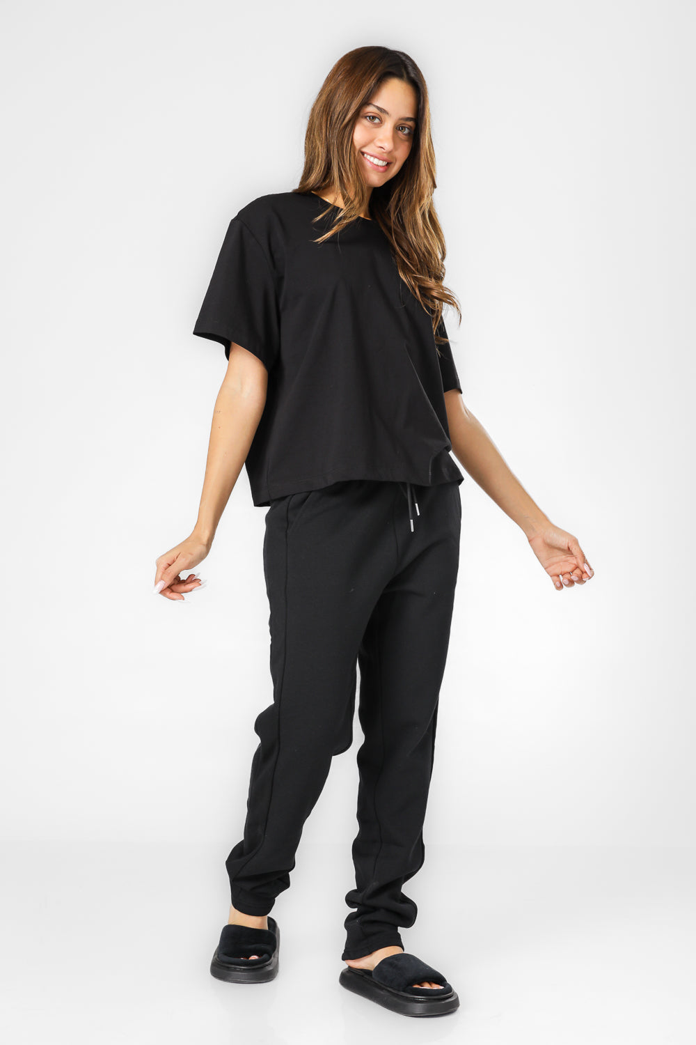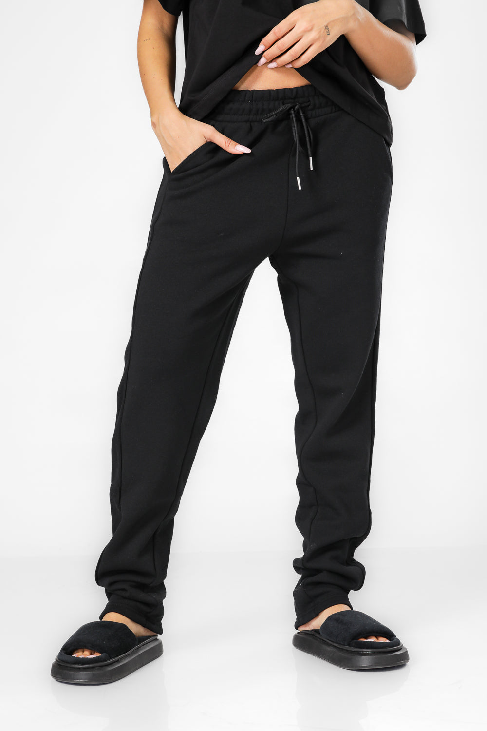 מכנסי פוטר בגזרה ישירה בצבע שחור