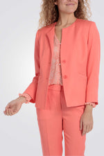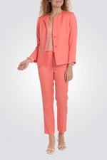 בלייזר לנשים מבית המותג PUNT ROMA בצבע קורל, עם שרוולים ארוכים, צווארון עגול, 2 כיסים קדמיים ו-2 כפתורים לסגירה.