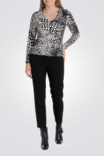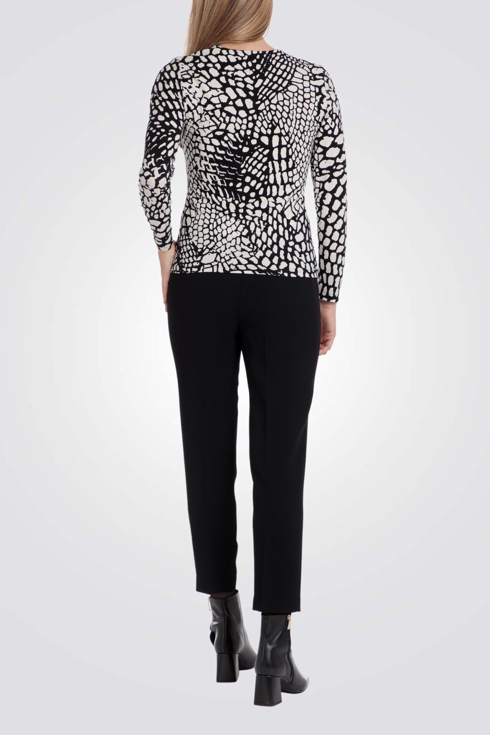 מכנסיים ארוכים מבית המותג PUNT ROMA בצבע שחור בגזרת קפרי באורך שלושת רבעי עם כיס אחורי, סגירת רוכסן וכפתור.