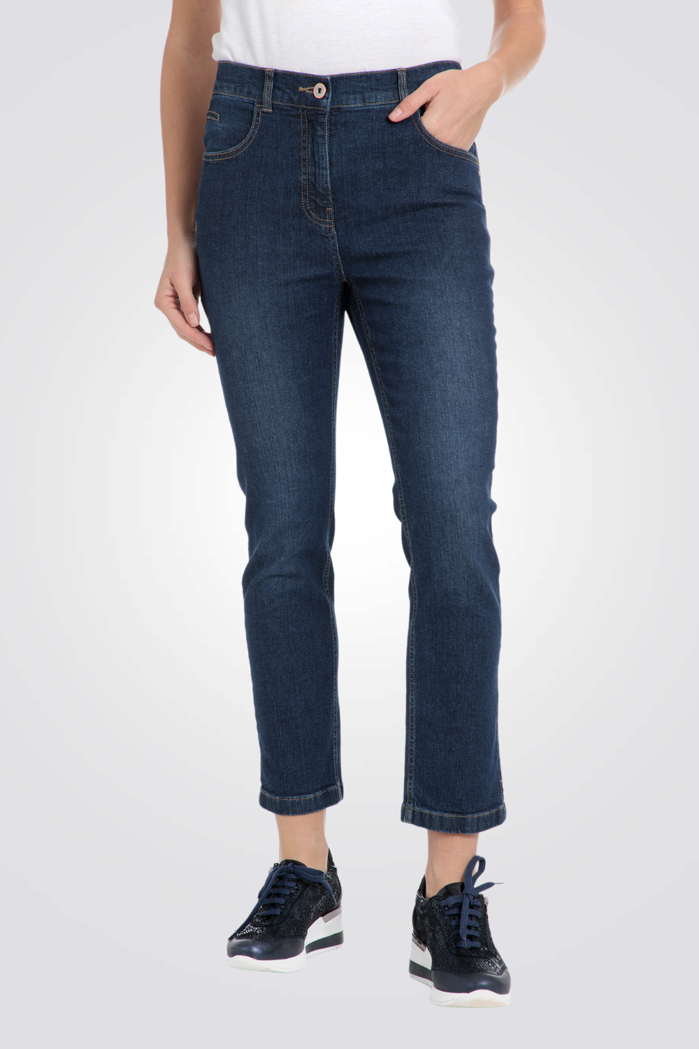 מכנסי ג'ינס לנשים מבית המותג PUNT ROMA עם כיסים, לולאות לחגורה, שסעים למטה, סגירת רוכסן וכפתור.