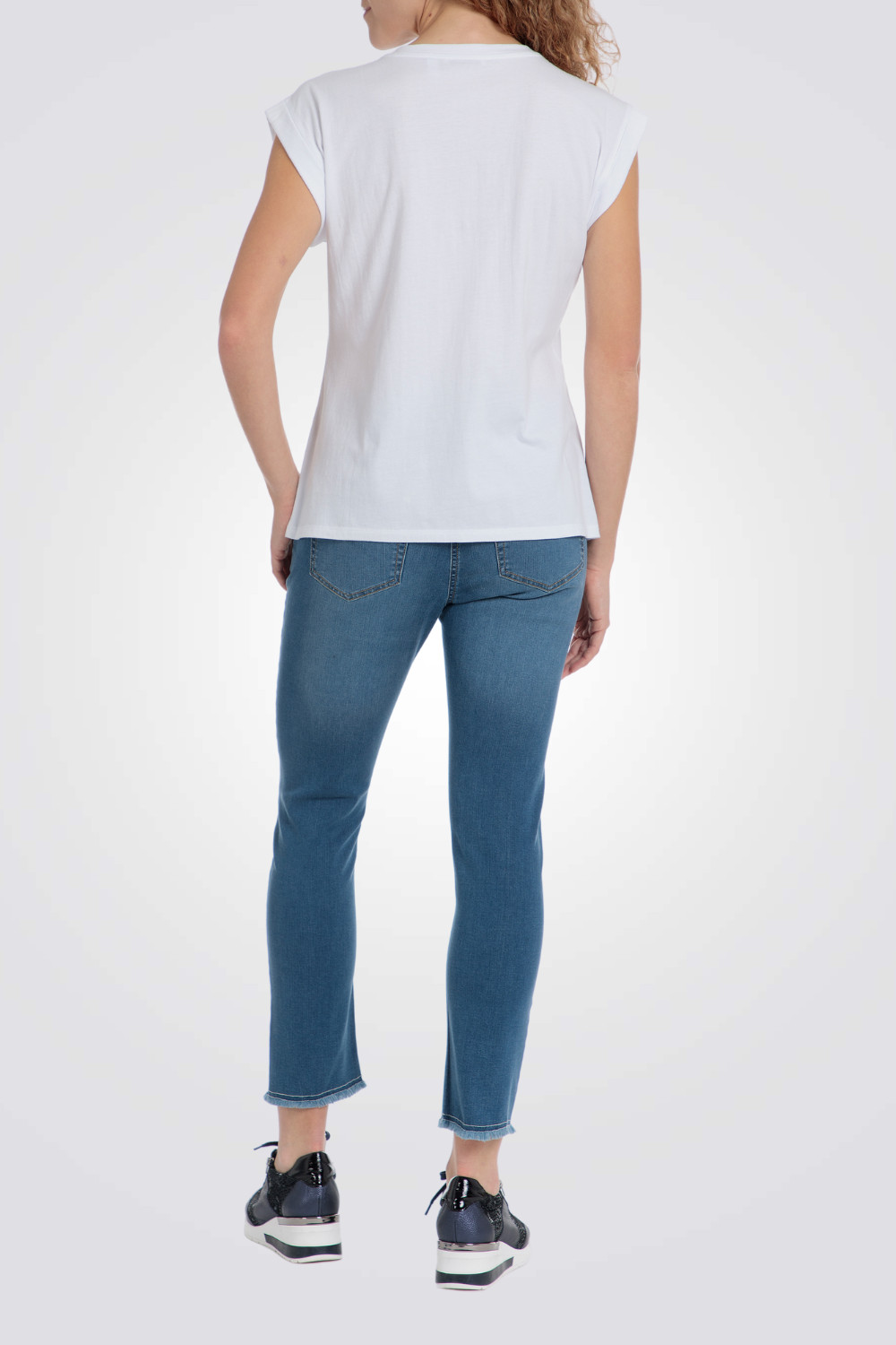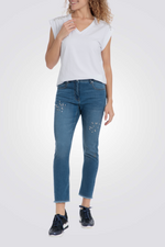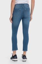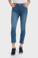 מכנסי ג'ינס לנשים, מבית המותג PUNT PUMA עם אבן חן, 5 כיסים, לולאות לחגורה, שסעים למטה, סגירת רוכסן וכפתורים.