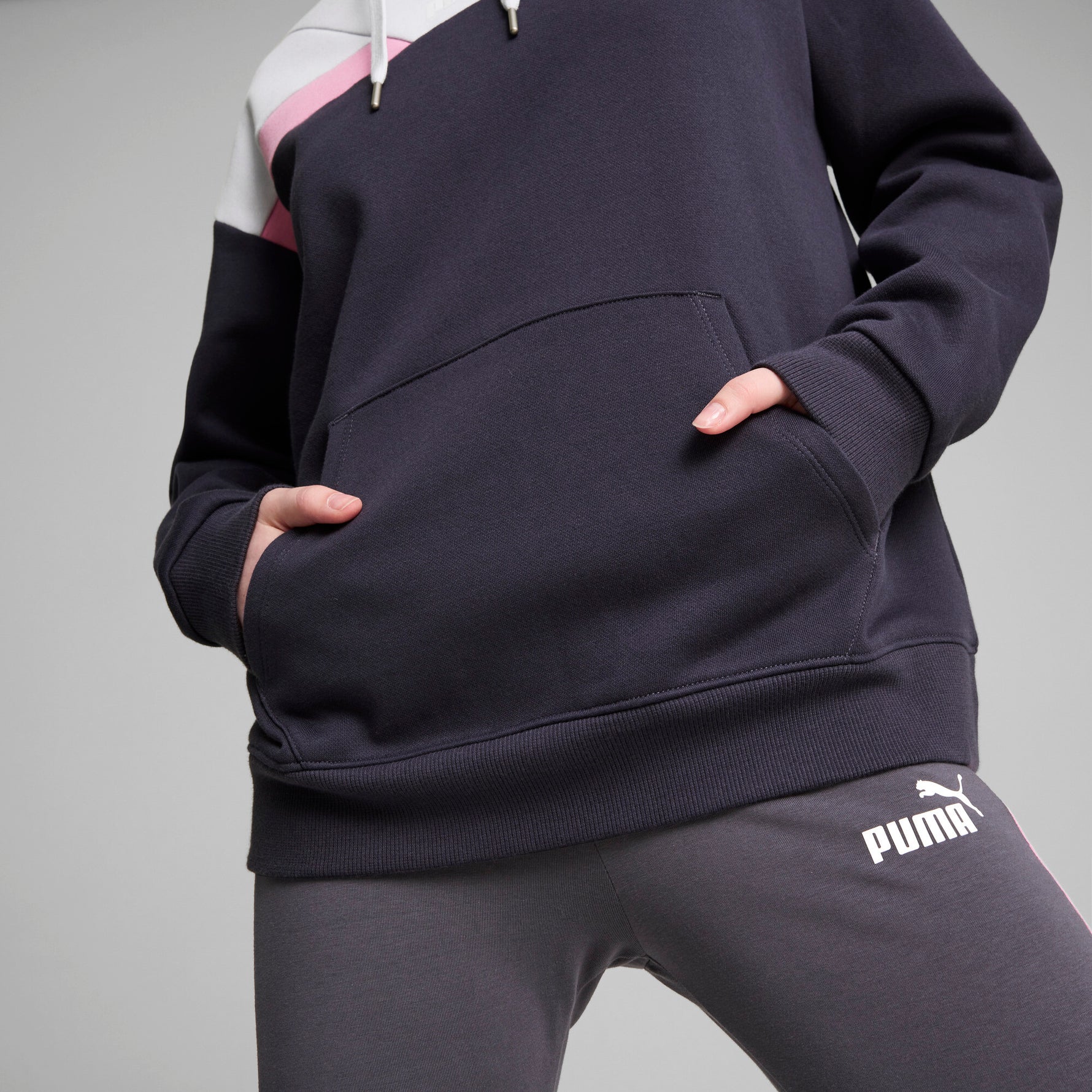 קפוצ'ון מבית המותג PUMA, בצבע אפור כהה. מעוצב בסגנון אלגנטי. בעל כיס קדמי לשמירה על החפצים.