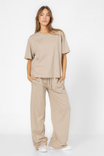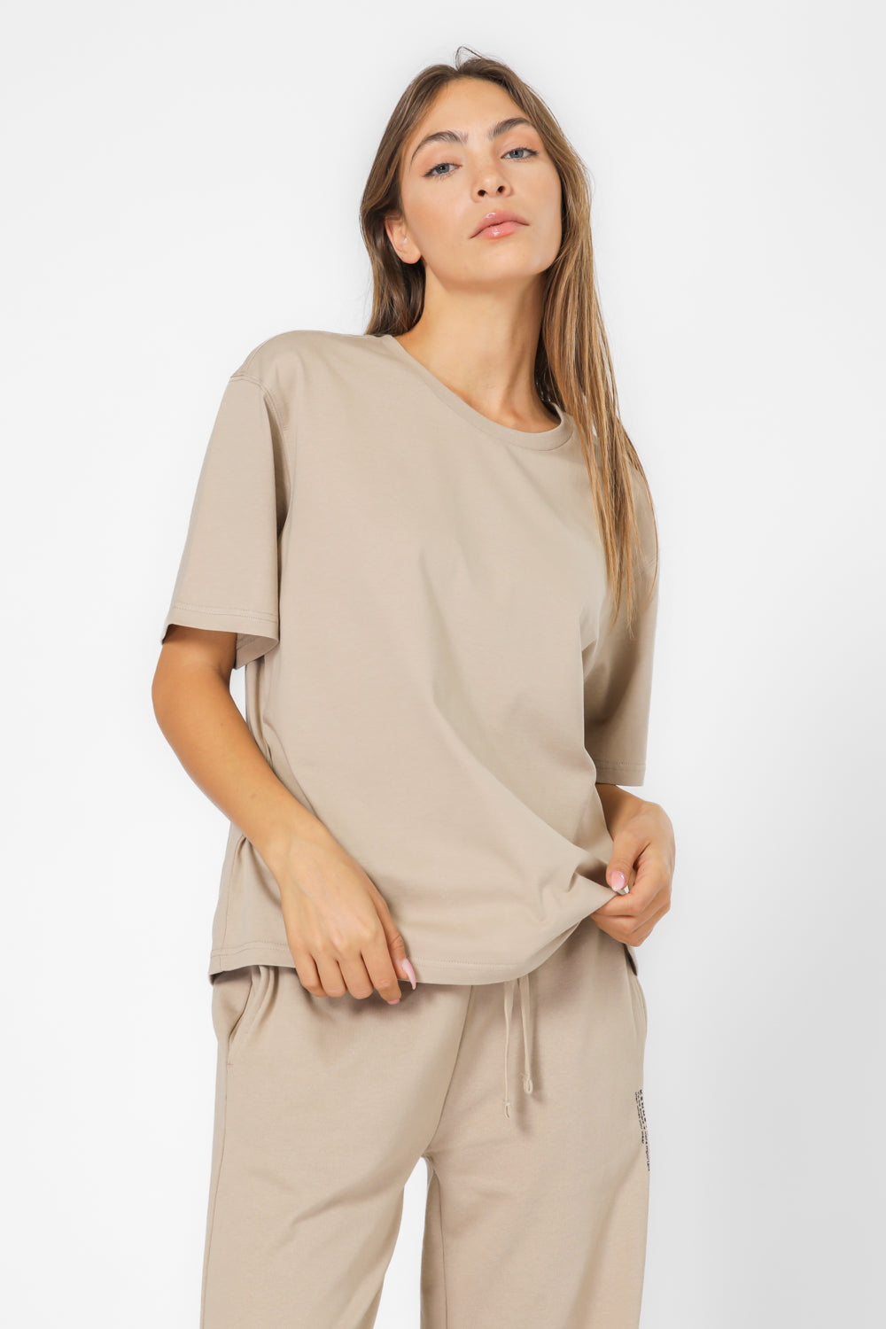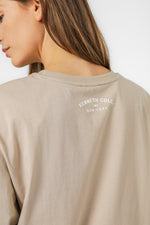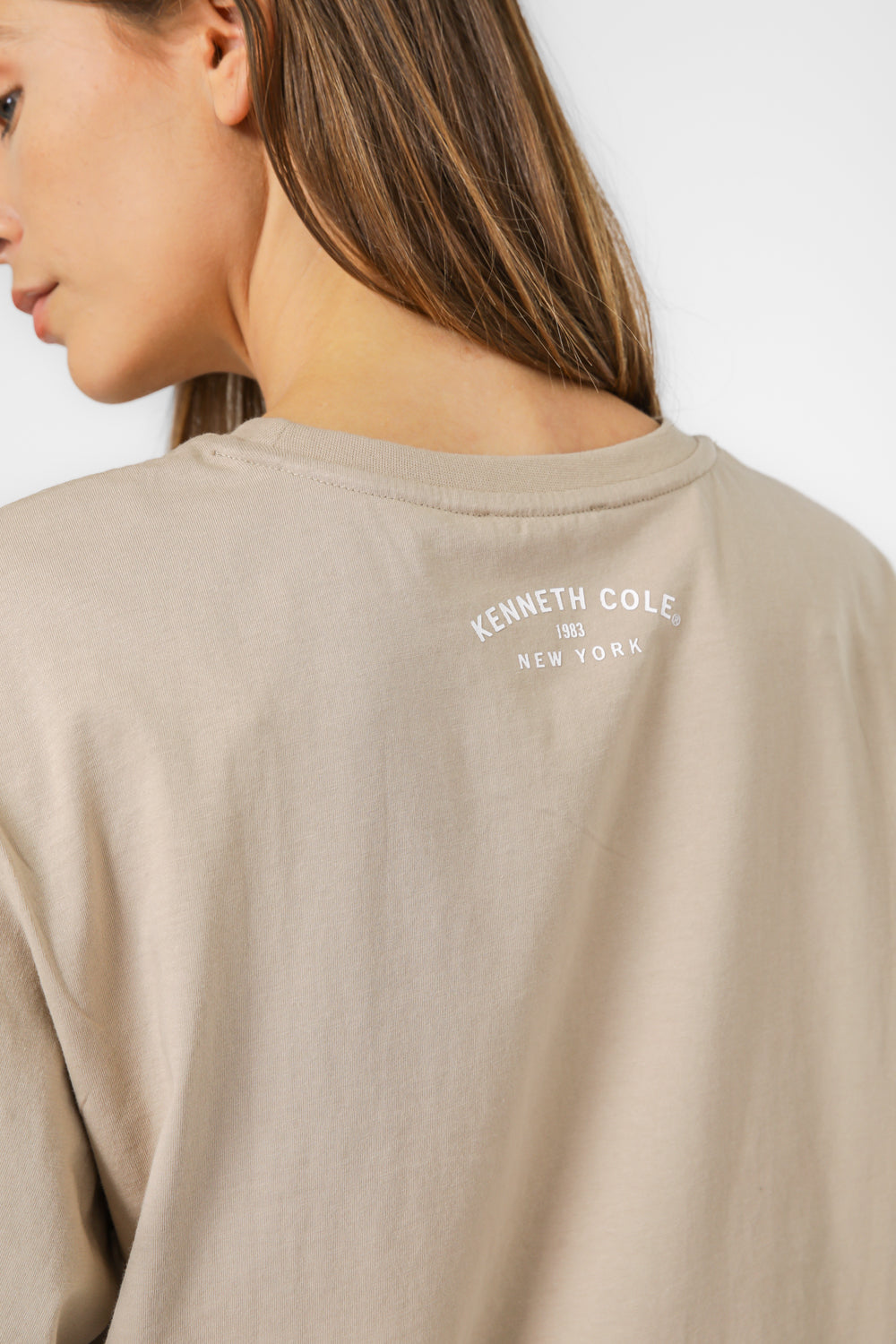 טישירט אוברסייז לנשים מבית המותג KENNETH COLE, בצבע בז', עשויה מבד ג'רסי קליל ונעים.