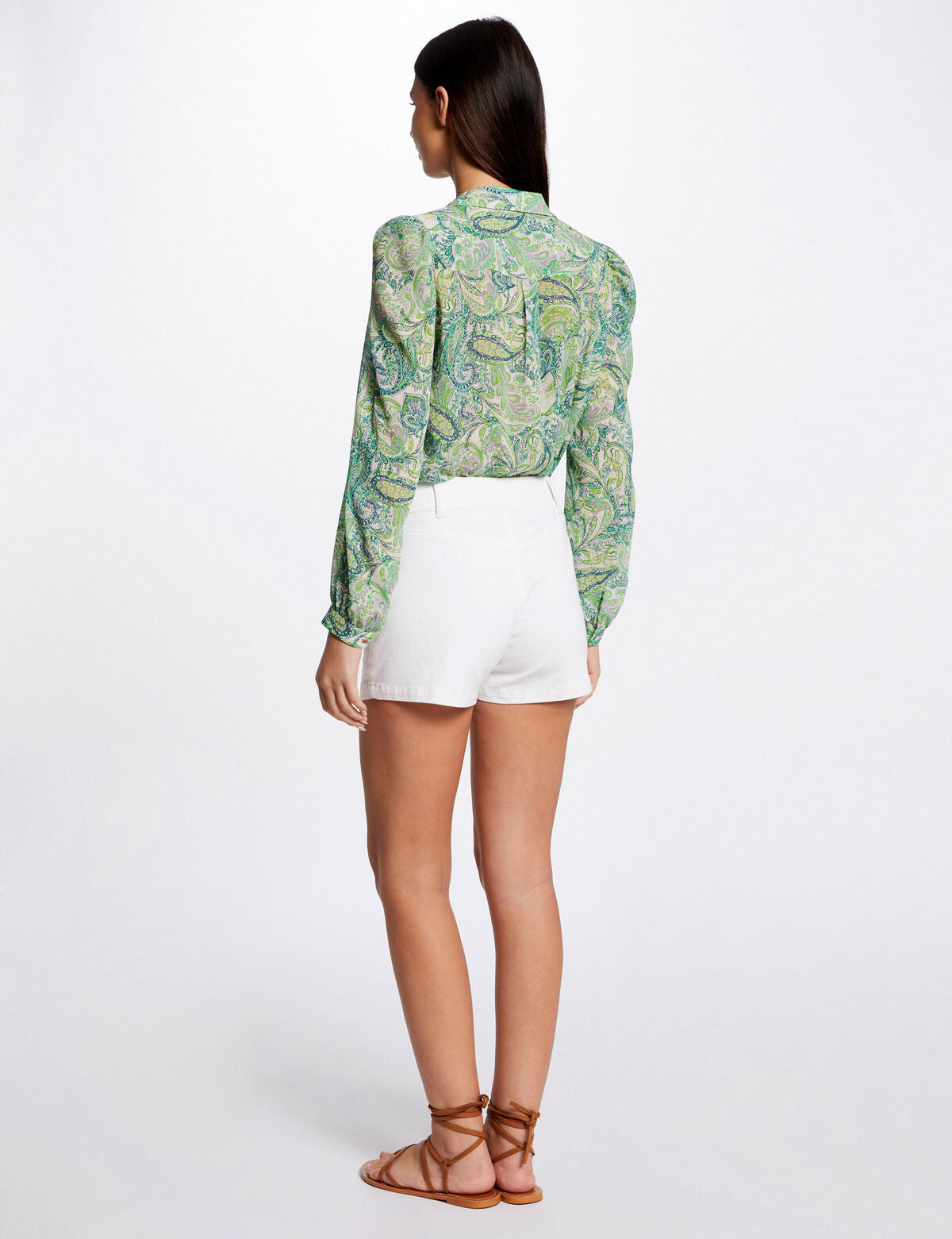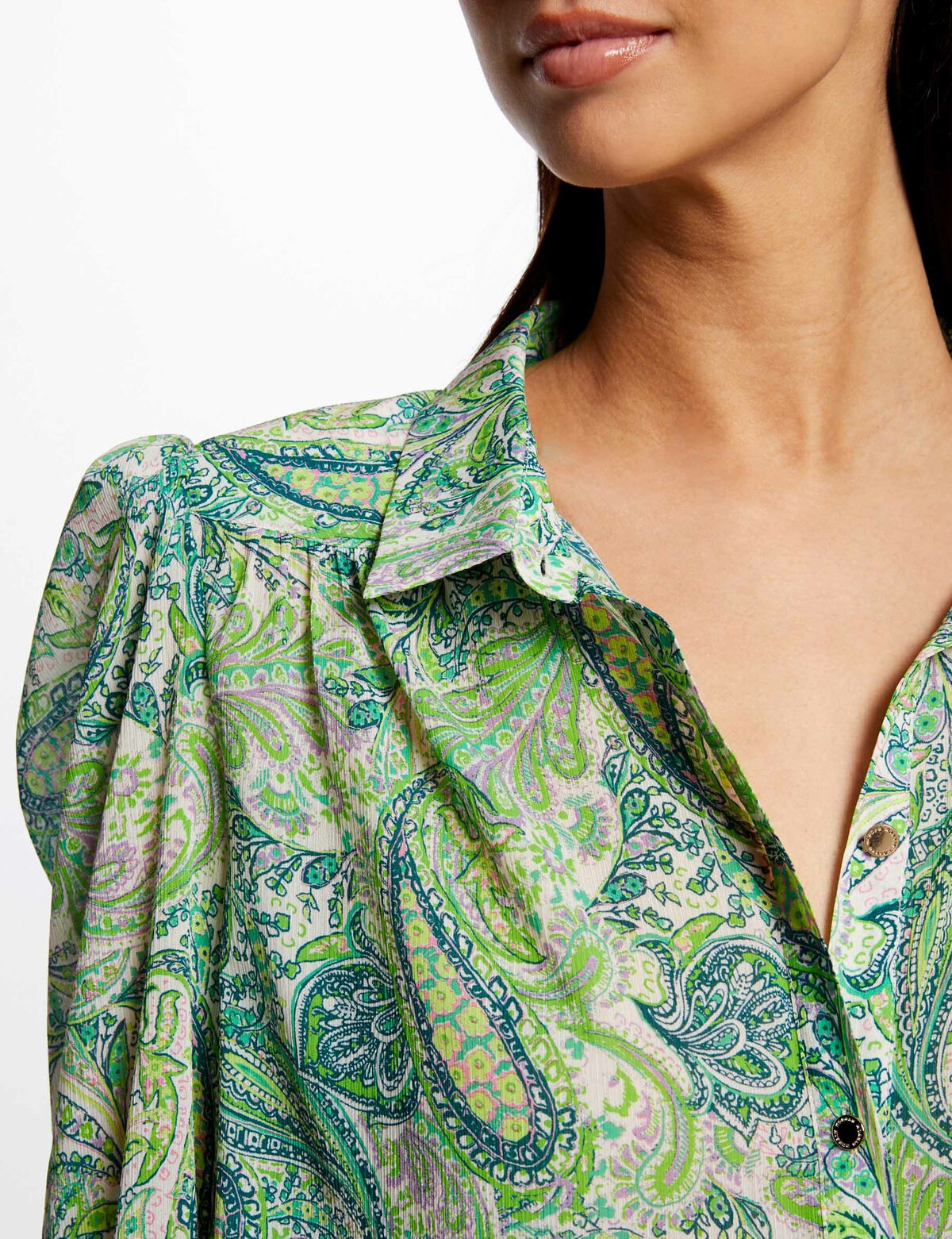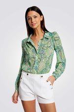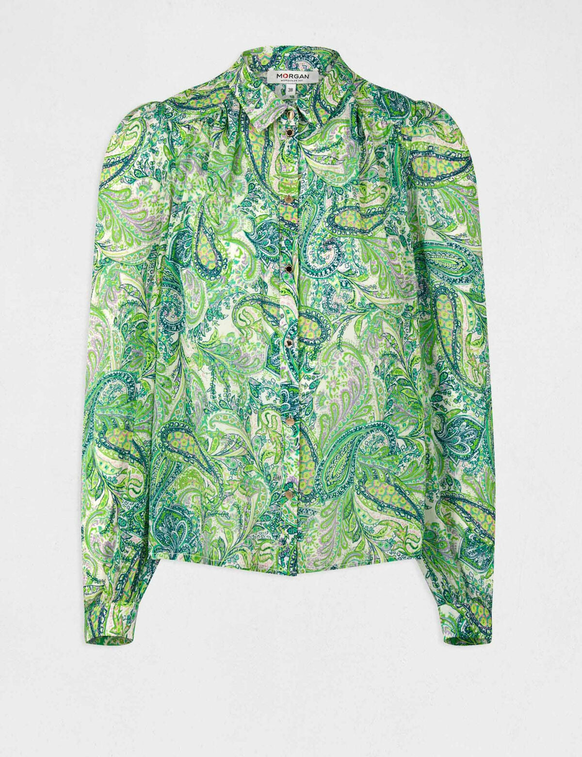 חולצה מכופתרת מבית המותג MORGAN, חולצה בעלת שרוולים ארוכים וכפתורים בקו הצווארון, צווארון דש בשילוב גווני ירוק