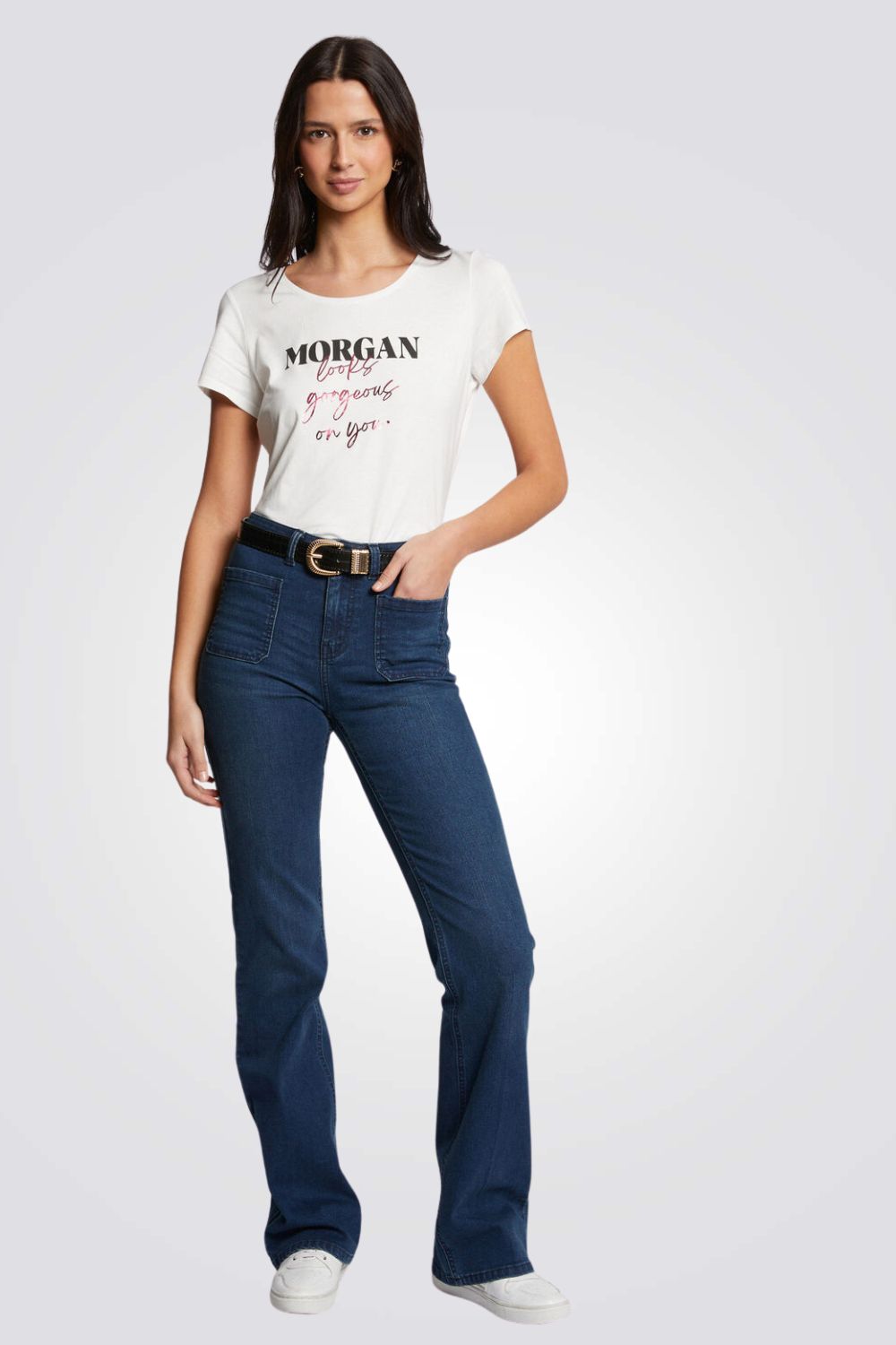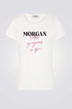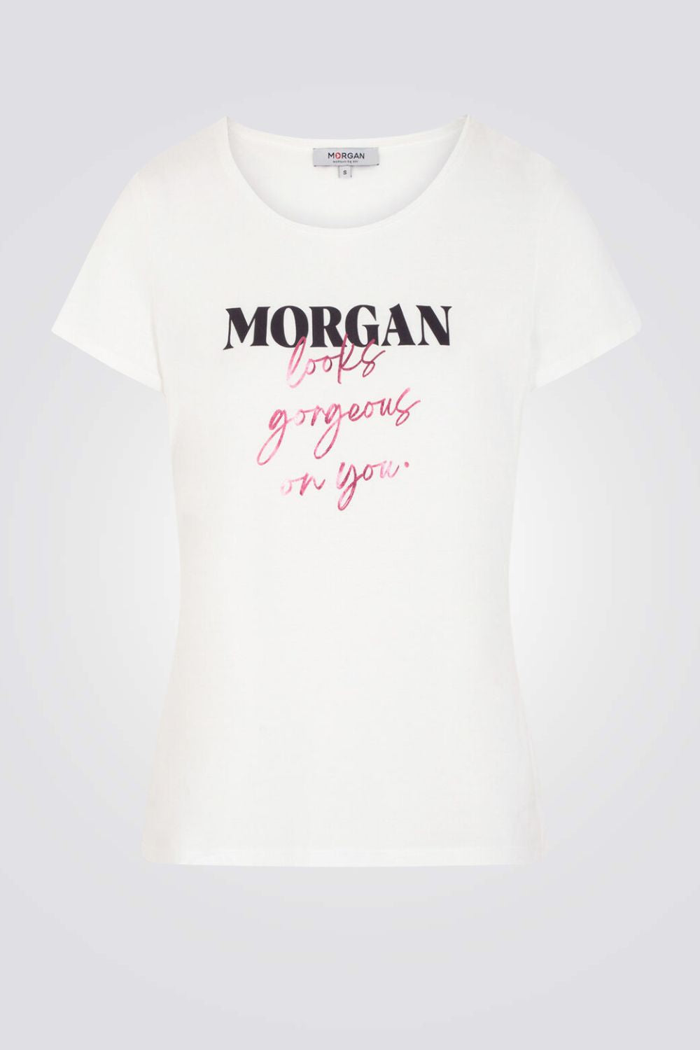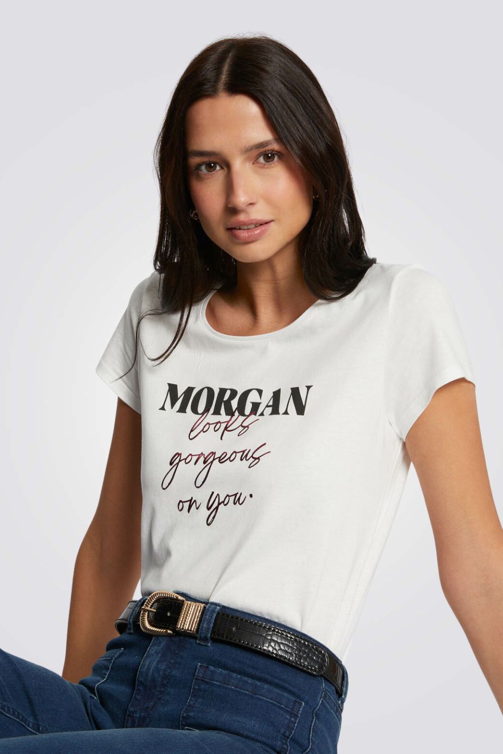 חולצת טי עם שרוולים קצרים והדפס בצבע לבן