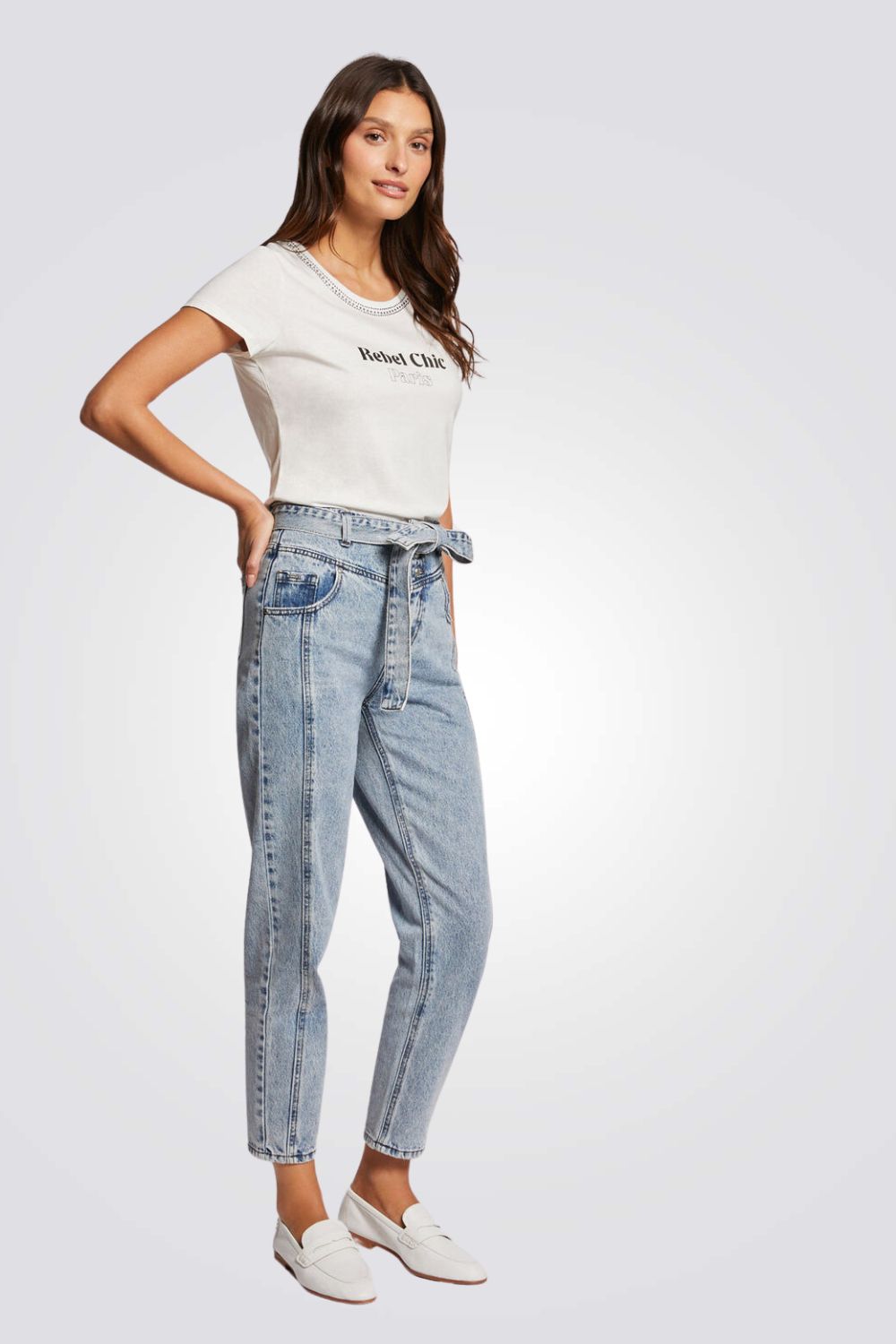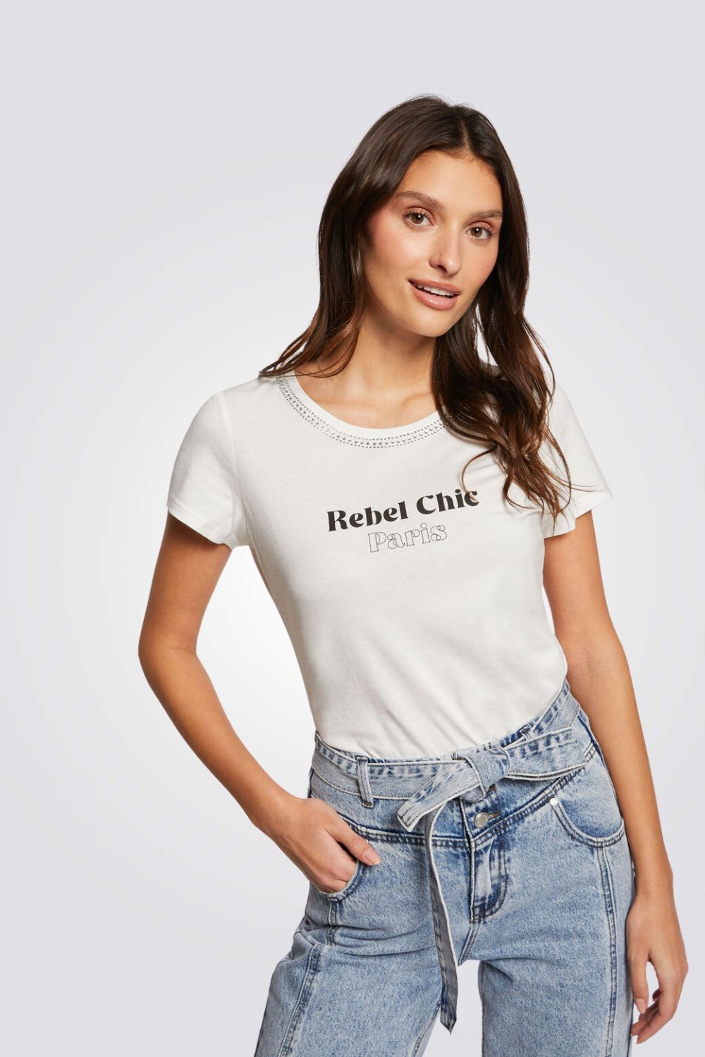 חולצת טי עם אבני חן והדפס