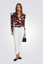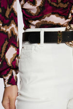 מכנסי 3/4 לנשים מבית המותג MORGAN בצבע לבן עם גזרה ישרה, בעלי רוכסן וכפתורים בחזית, כיסיים קידמיים ואחוריים ועם לולאות ייעודיות לחגורה.