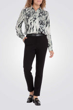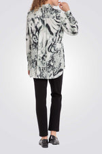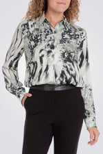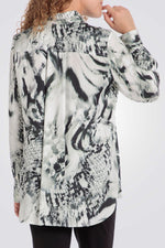 חולצה מכופתרת מבית המותג PUNT ROMA בהדפס מנוחש בצבעי ירוק בהיר עם שרוולים ארוכים וקפלים בגב החולצה.