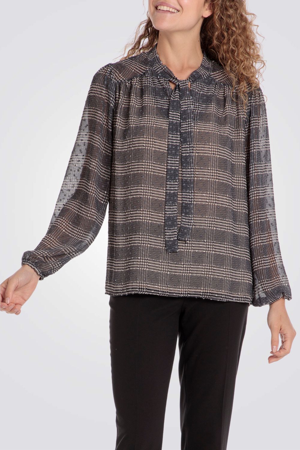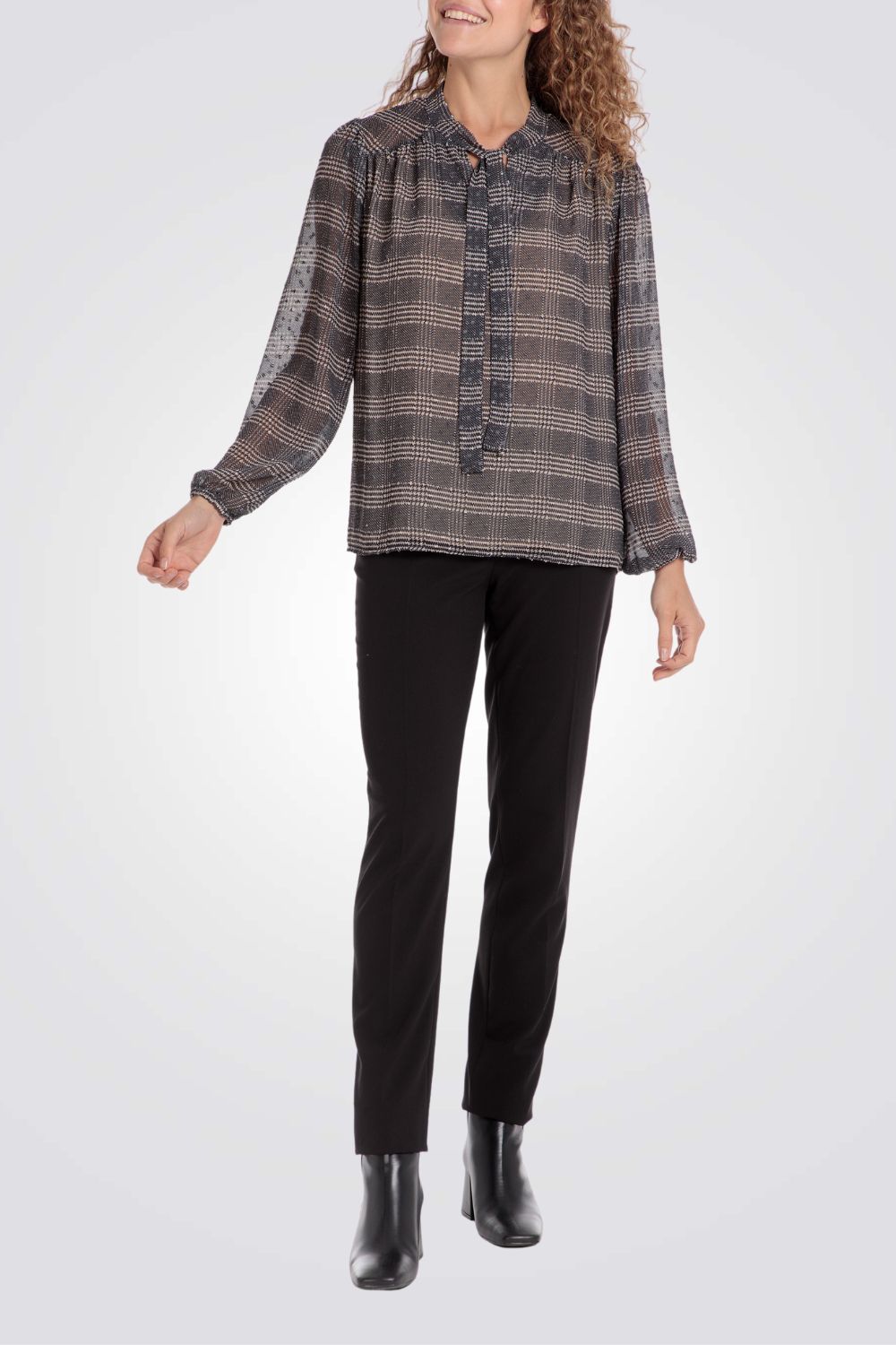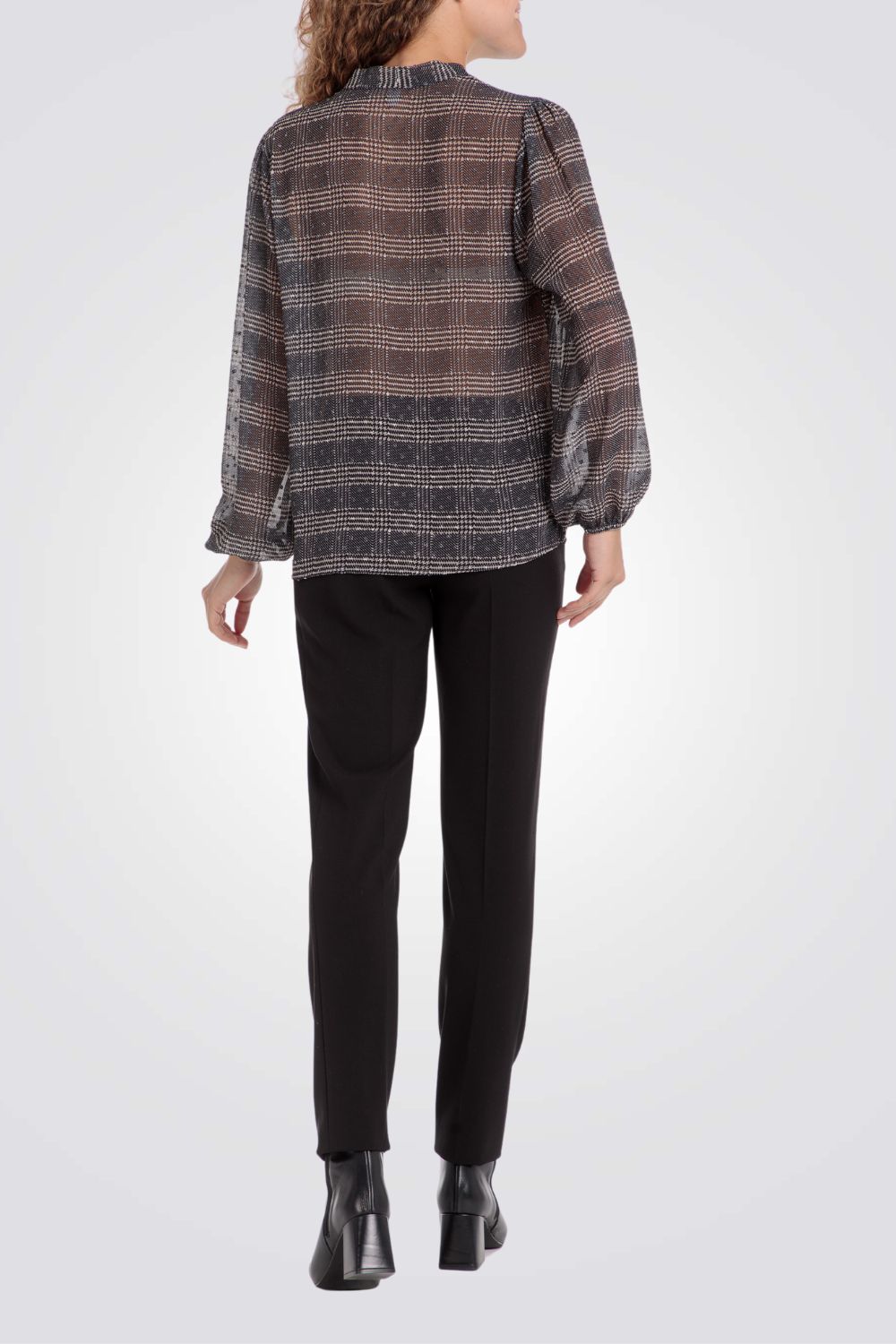 חולצה מבית המותג PUNT ROMA משובצת ומעט שקופה עם צווארון קשירה ושרוולים ארוכים.