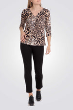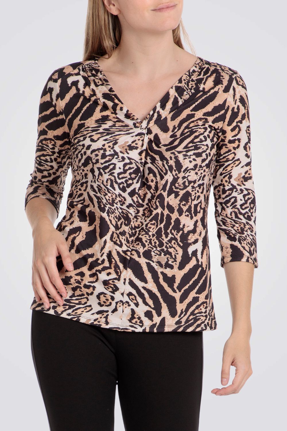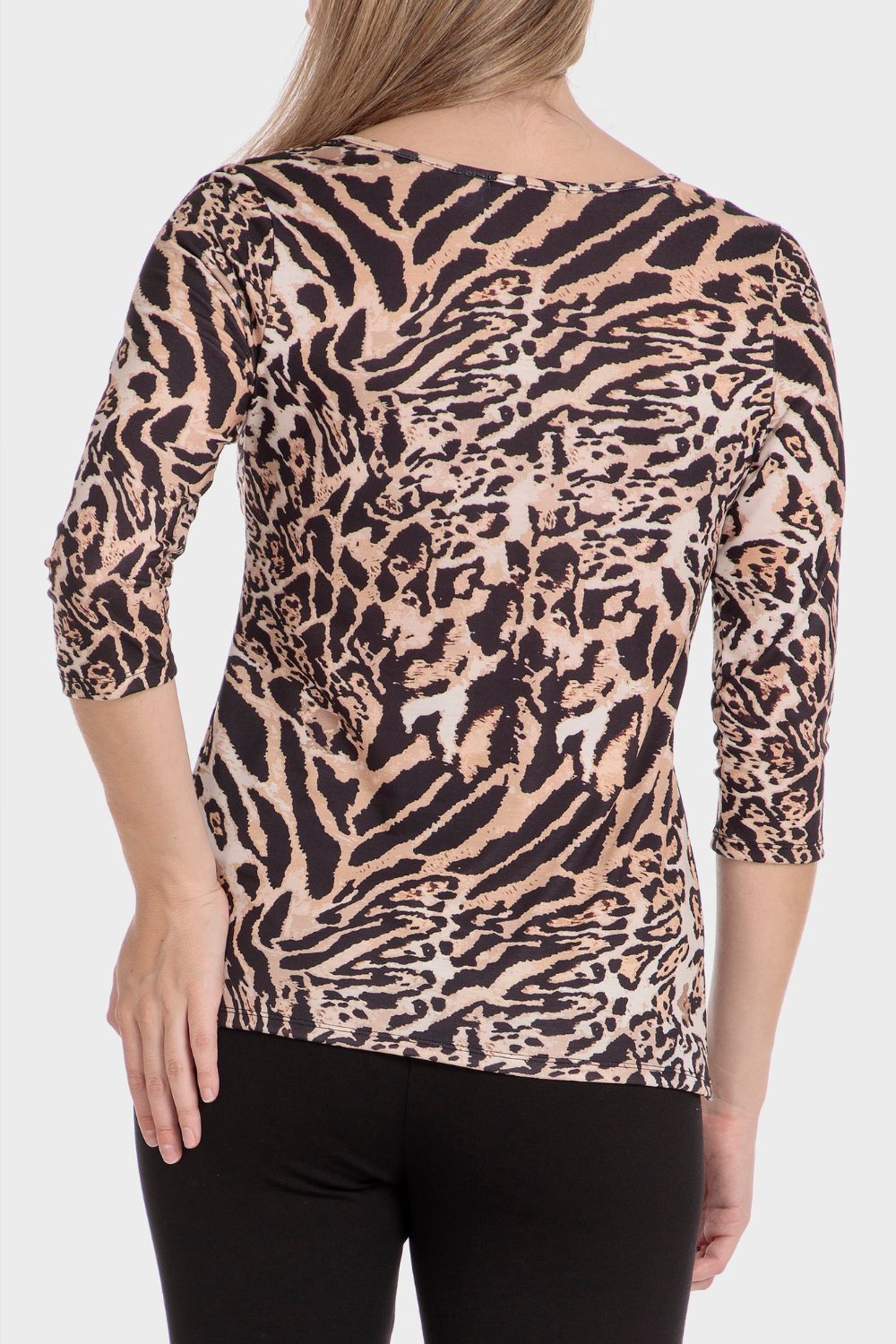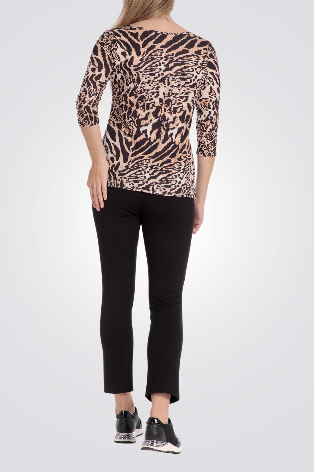 חולצת טישירט מבית המותג PUNT ROMA בהדפס מנומר, עם שרוולי שלושת רבעי וצווארון וי בשילוב קפלים עדינים.