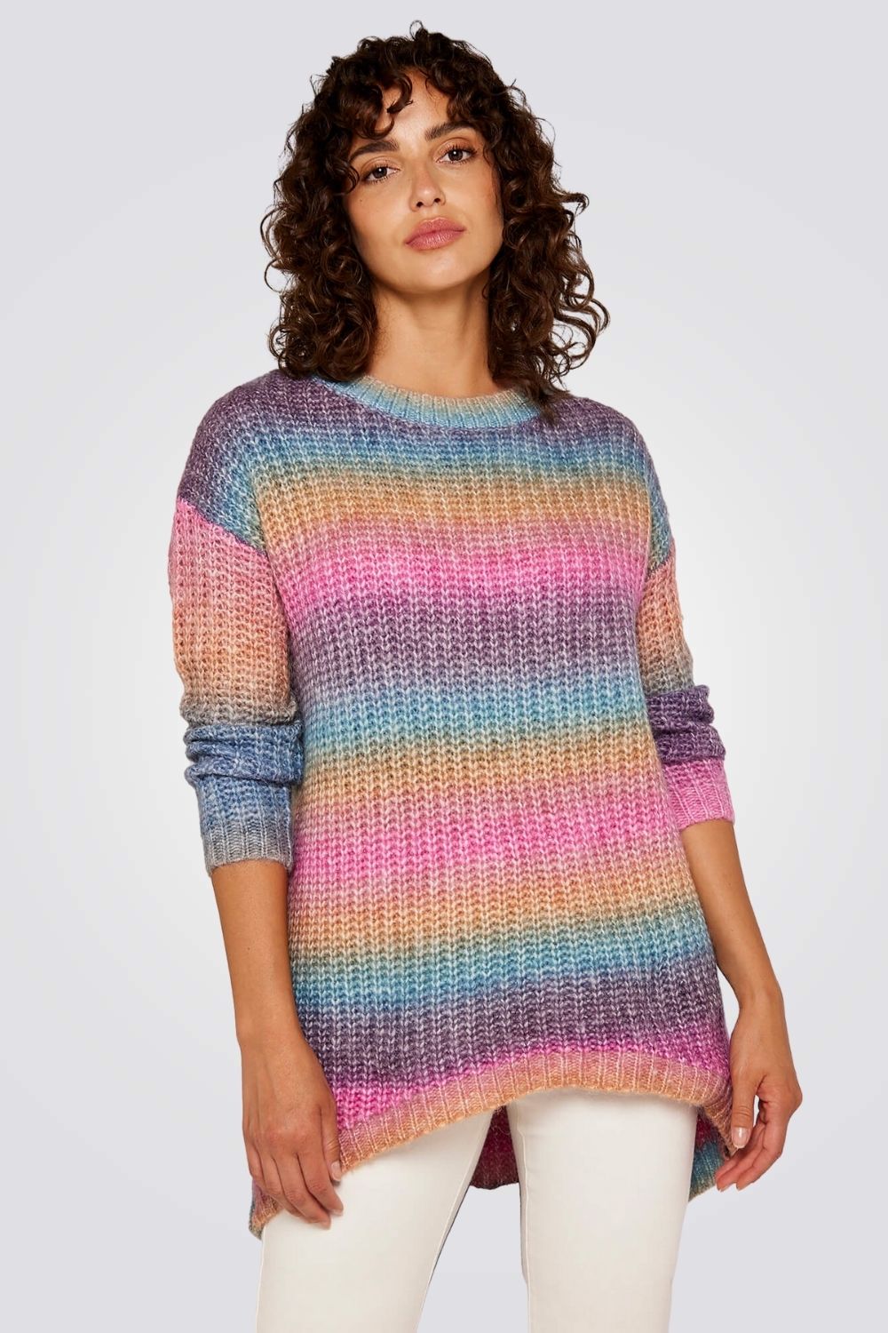 סריג מבית המותג APRICOT, בעיצוב צבעוני, בעל שרוולים ארוכים, צאוורון עגול וסגור ובגזרה ישרה