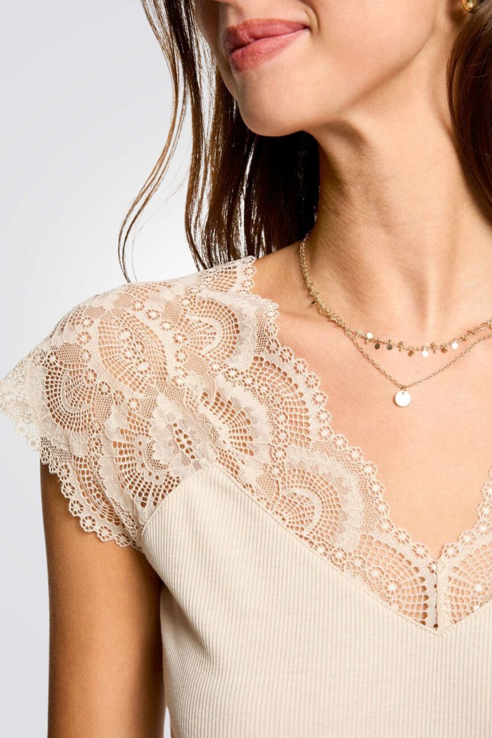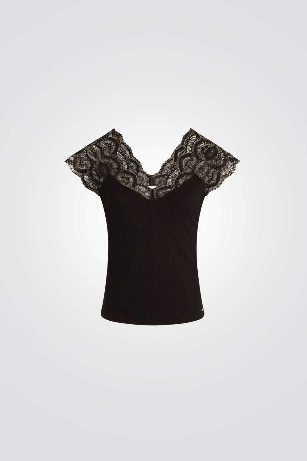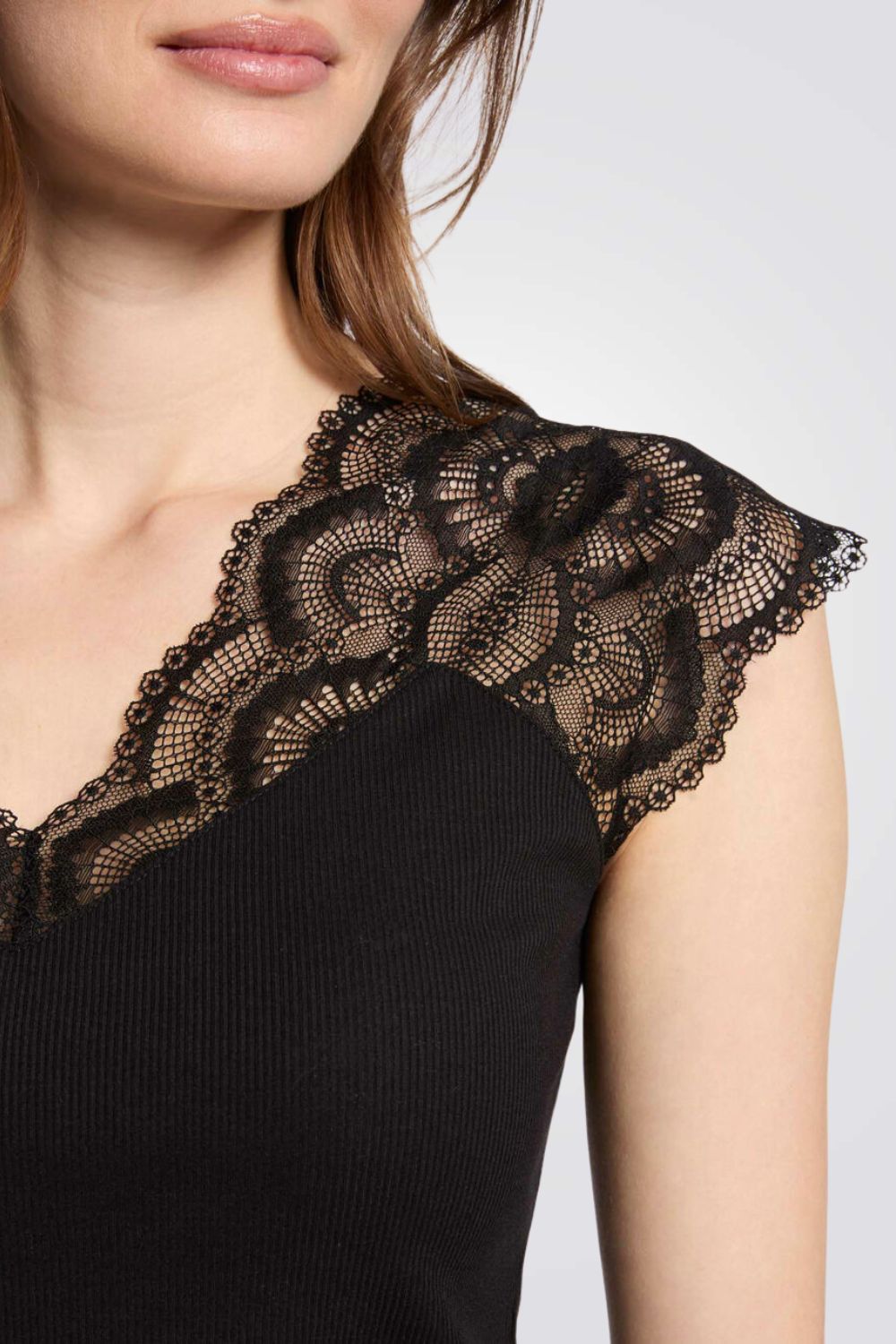 גופיה לנשים מבית המותג MORGAN, עשויה בד ריב, עם צווארון וי בשילוב כתפיות תחרה.