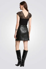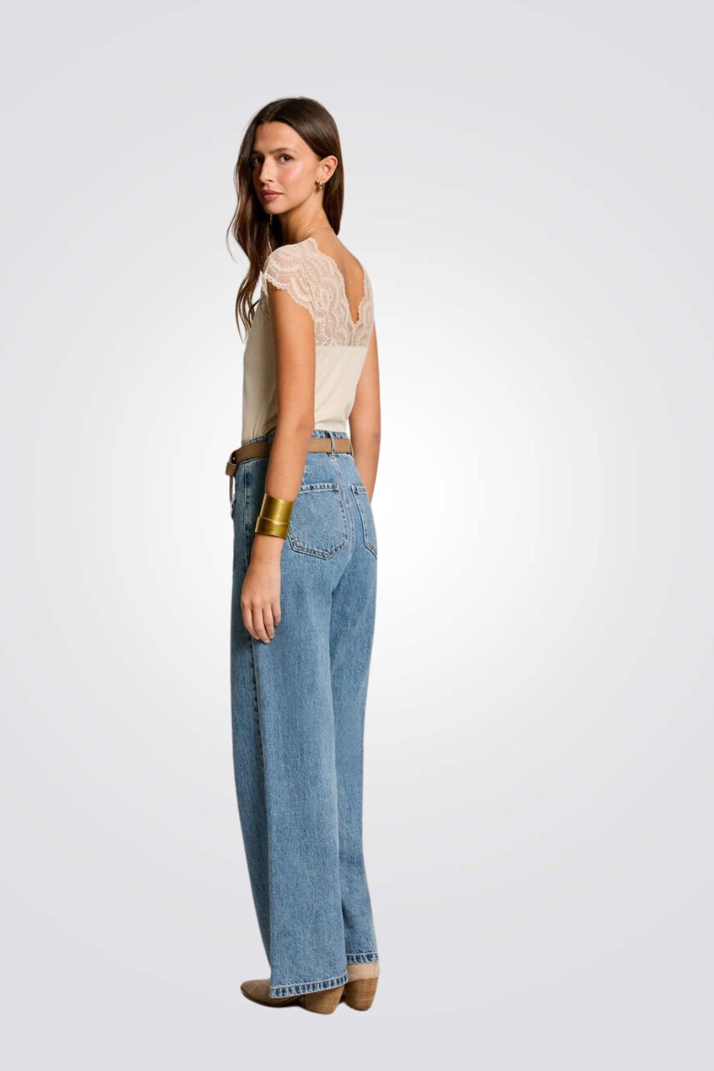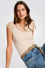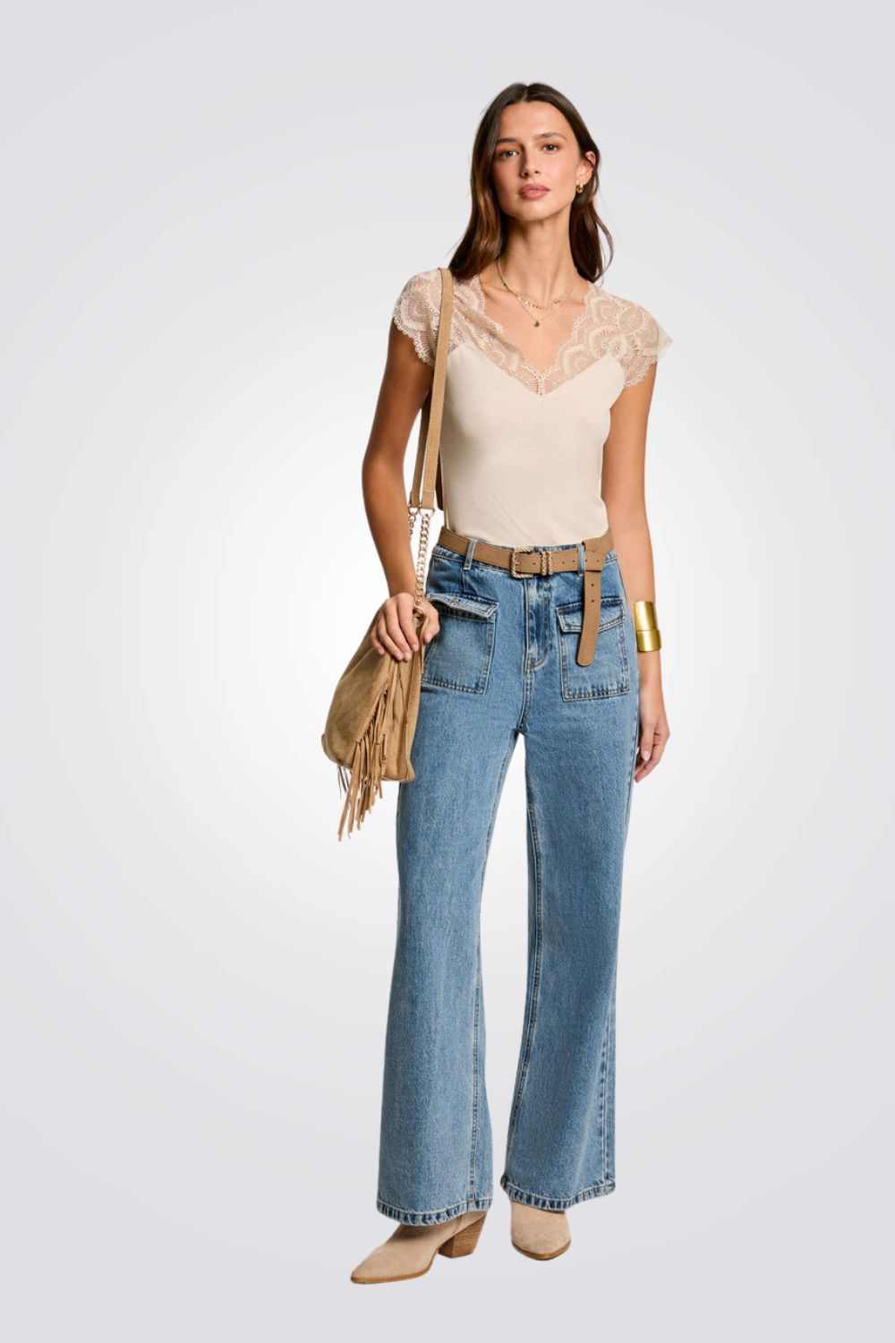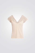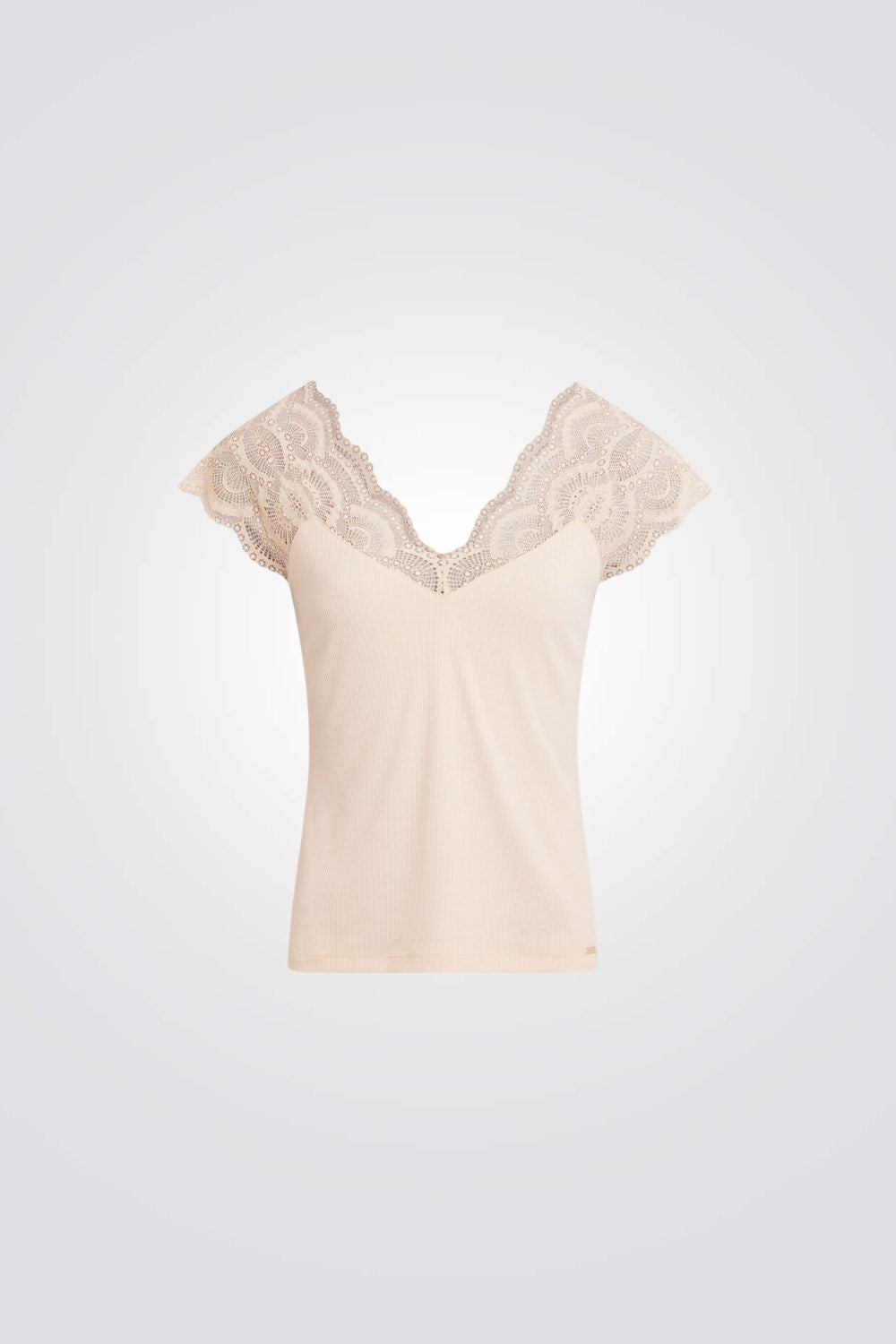 גופיה לנשים מבית המותג MORGAN, עשויה בד ריב, עם צווארון וי בשילוב כתפיות תחרה.