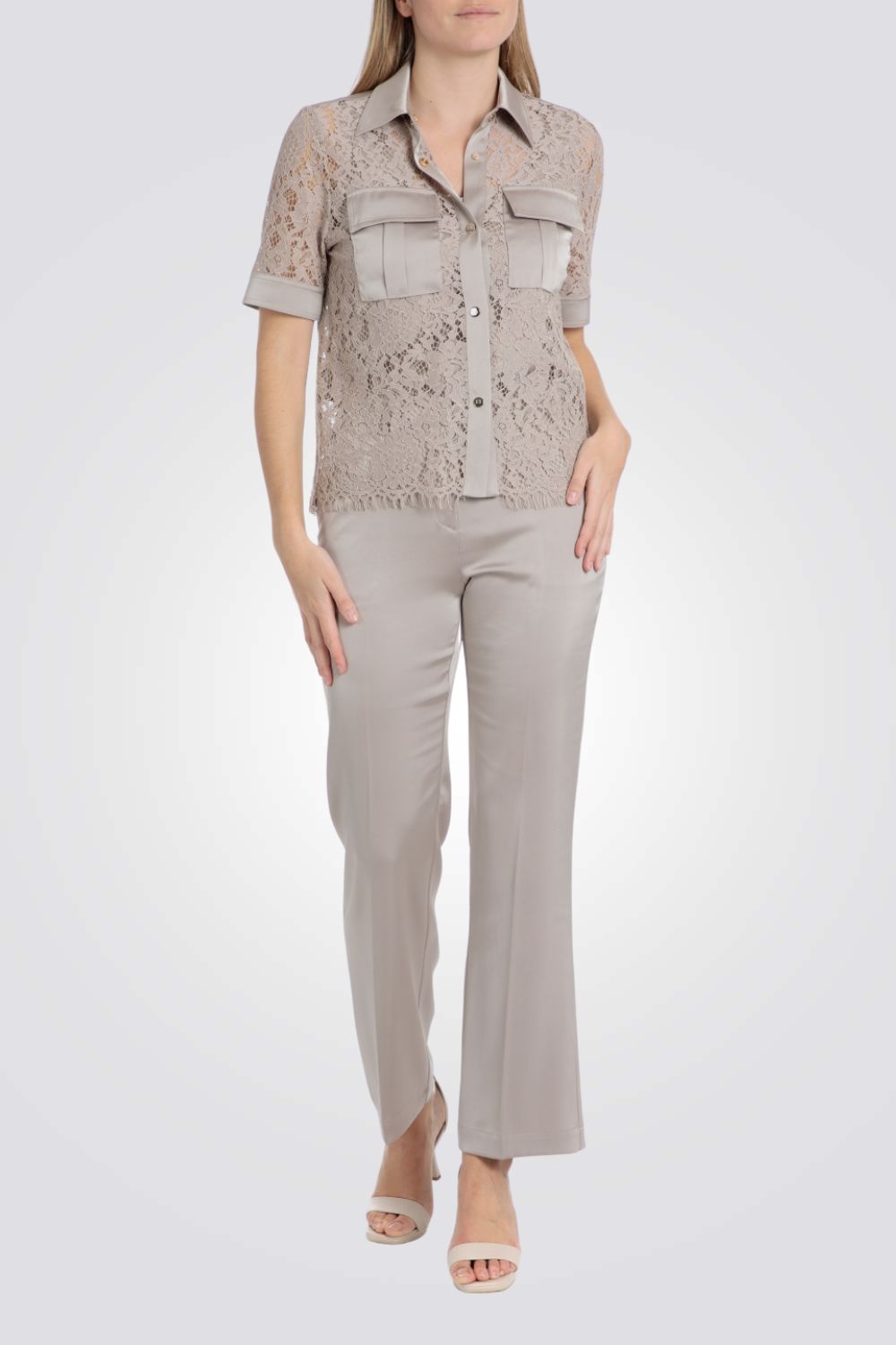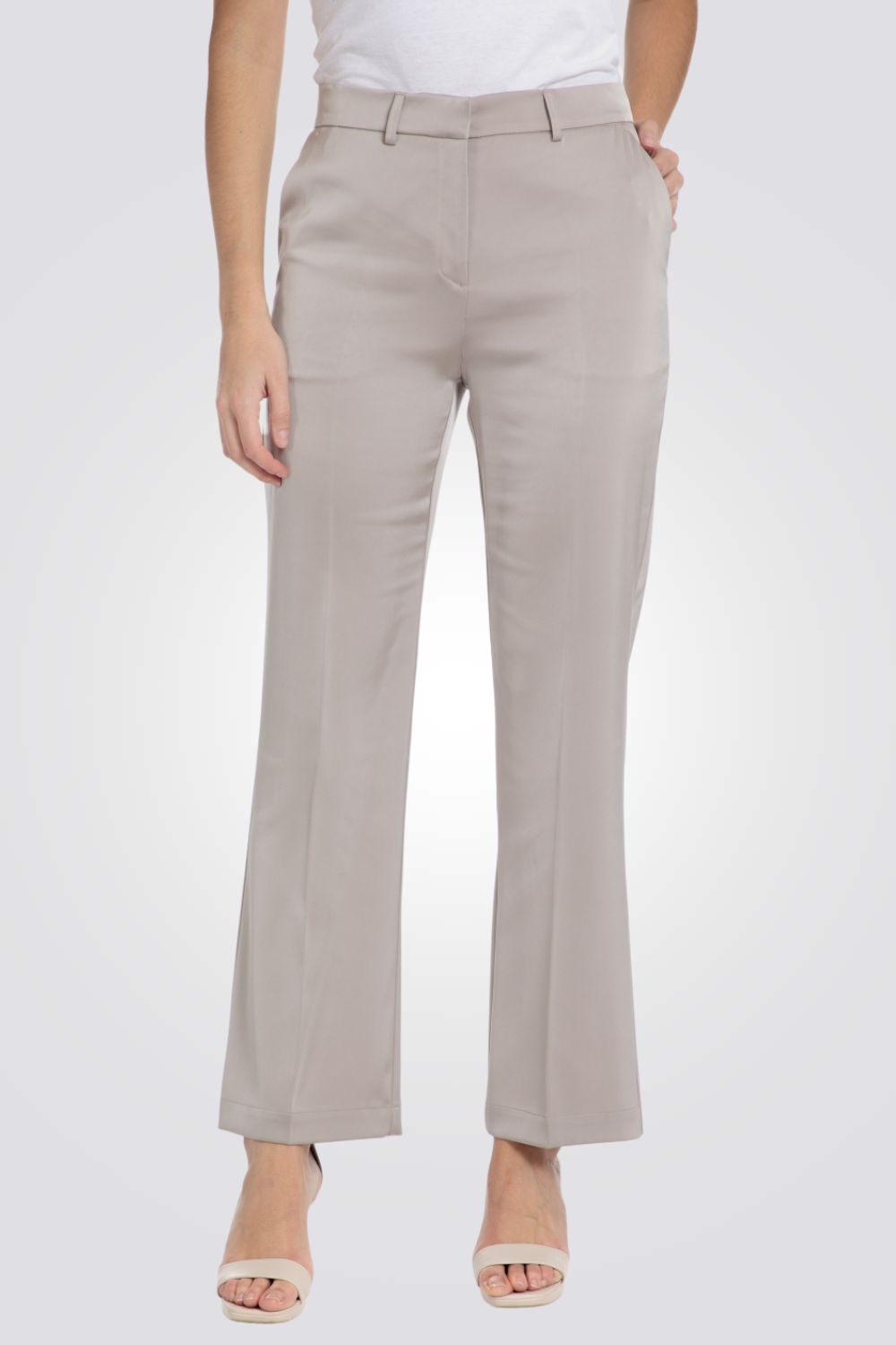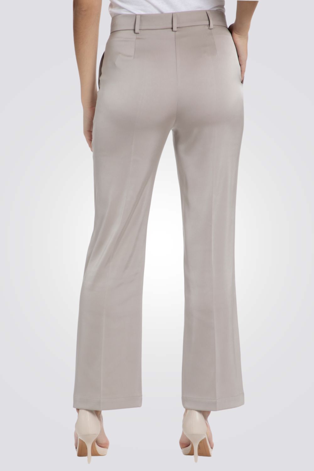 מכנסיים לנשים מבית המותג PUNT ROMA, עשויים מבד סאטן בצבע בז', לולאות לחגורה, ארבעה כיסים וסגירת רוכסן וכפתור.
