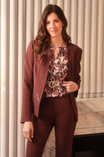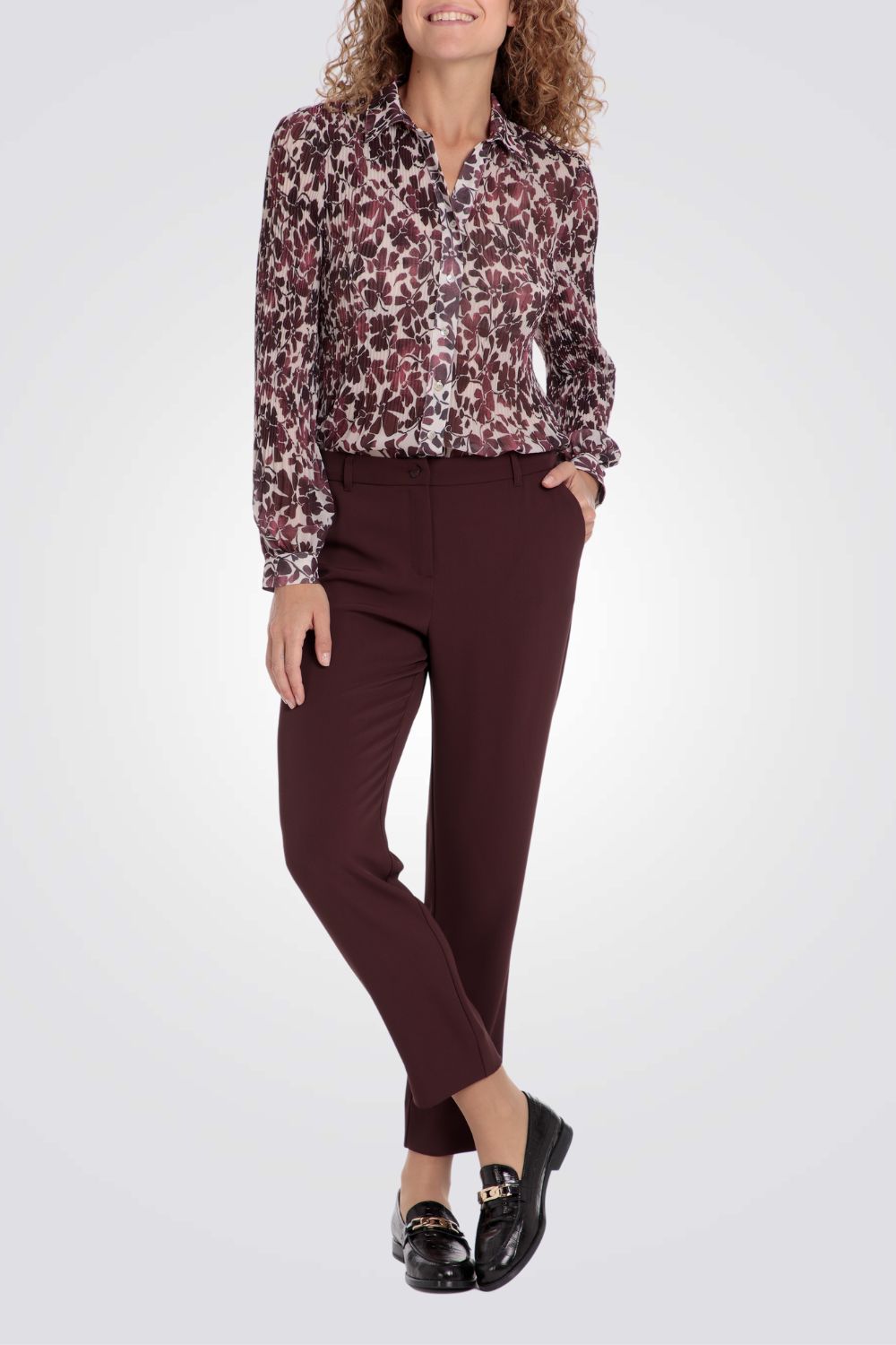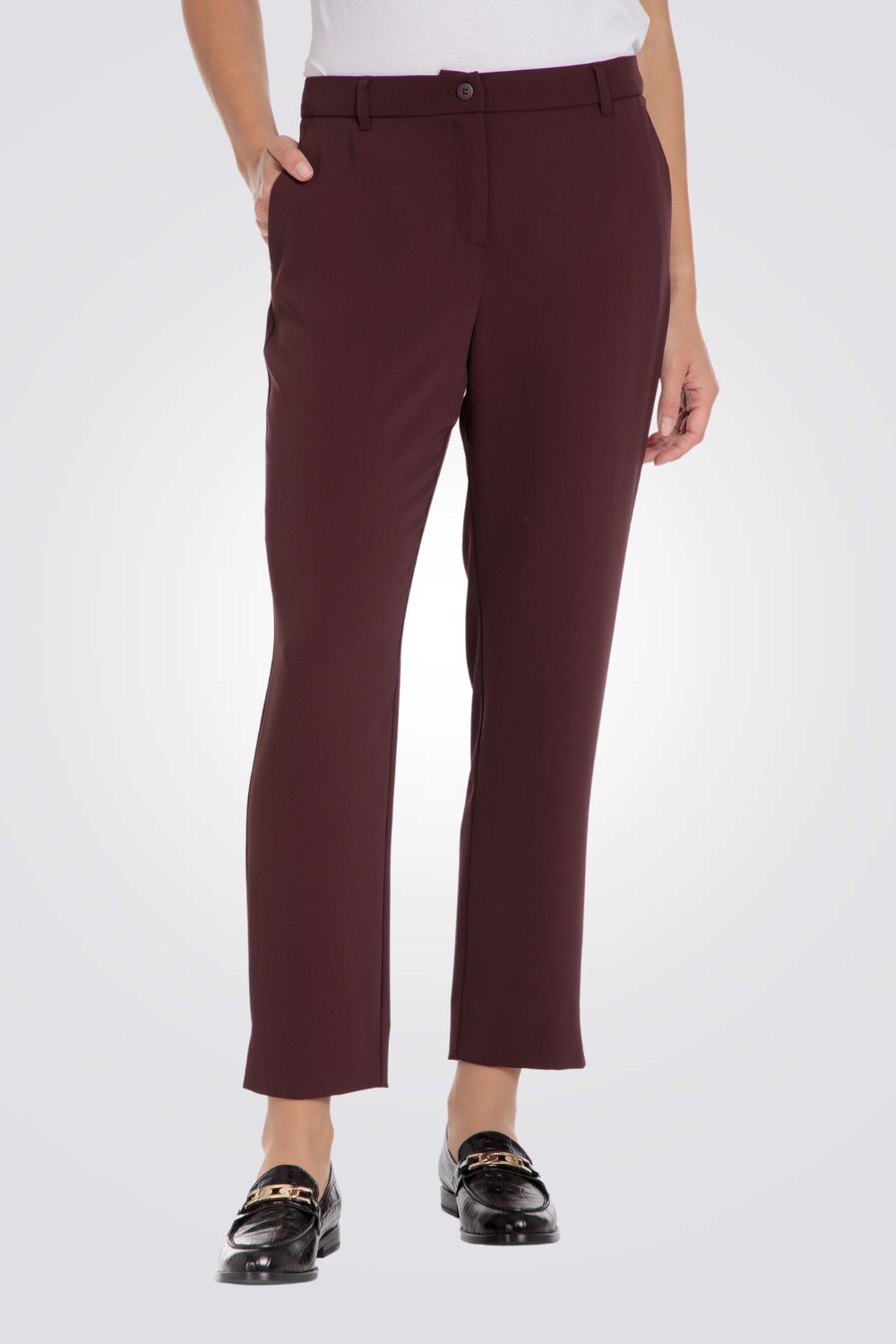 מכנס מחויט מבית המותג PUNT ROMA בצבע בורדו עם ארבעה כיסים, שסעים קצרים בשוליים, סגירת רוכסן וכפתור.