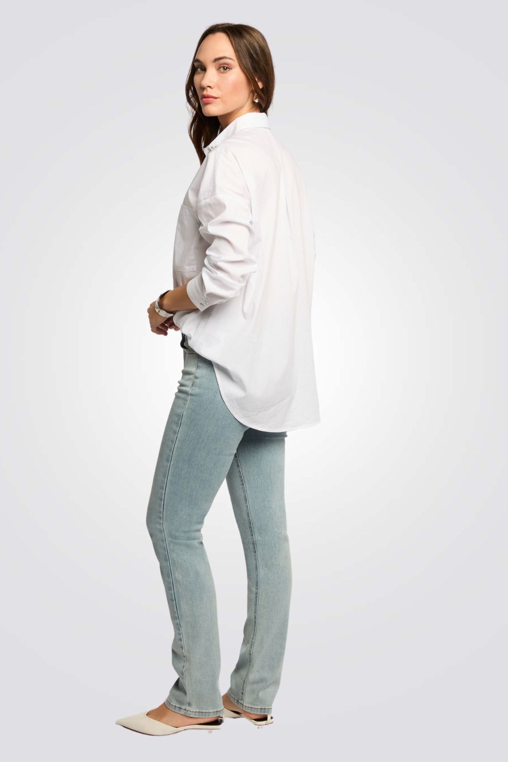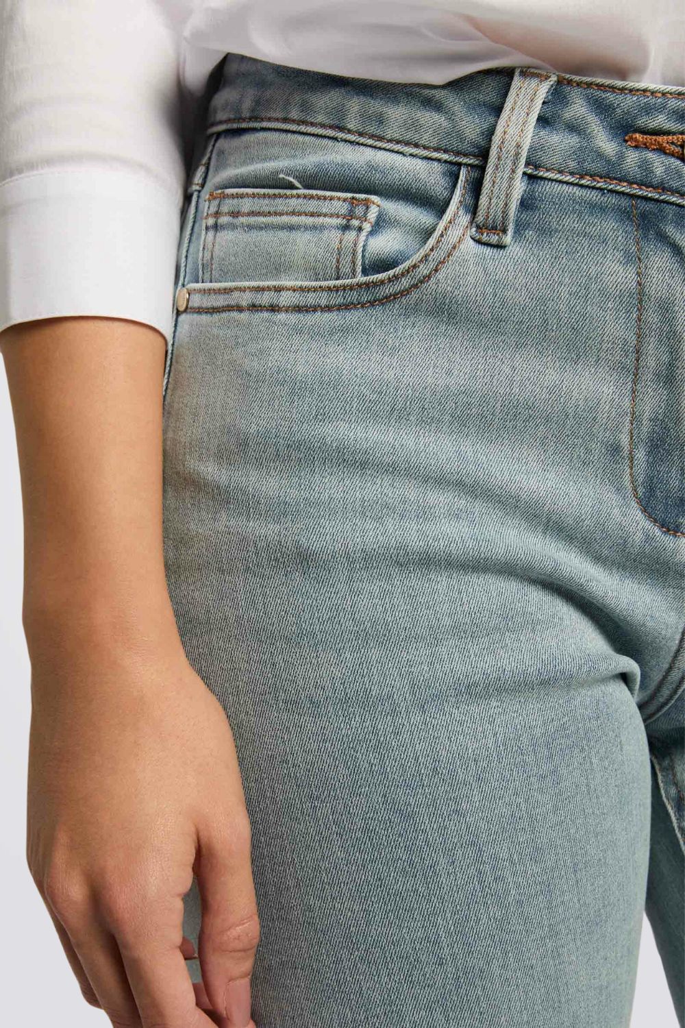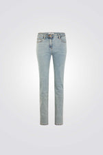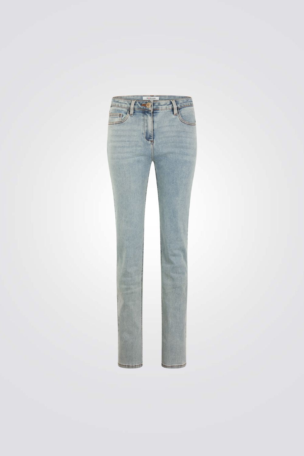 מכנסי ג'ינס ארוכים לנשים מבית המותג MORGAN, בגזרת ביניים Slim, עם 5 כיסים, בעל סגירת רוכסן וכפתור.