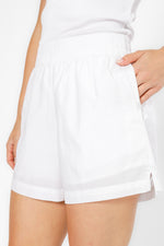 מכנסיים קצרים העשויים בד אריג דק ונעים עם גומי במותניים.