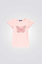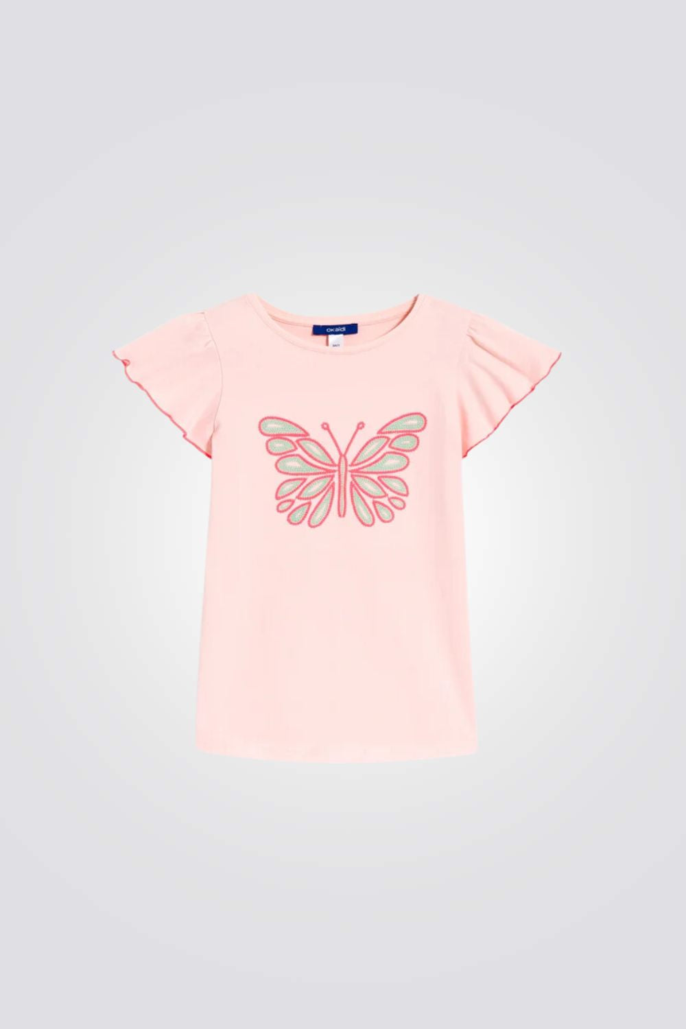 טישירט לילדות בצבע ורוד עם רקמת פרפר