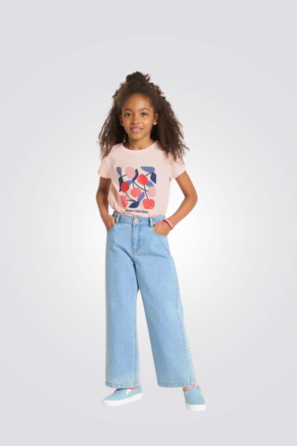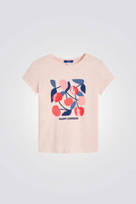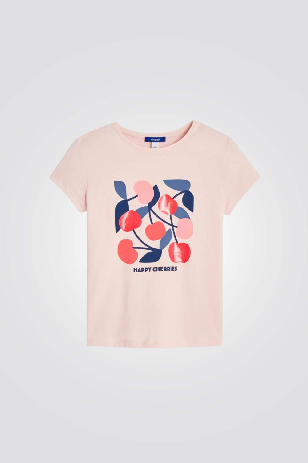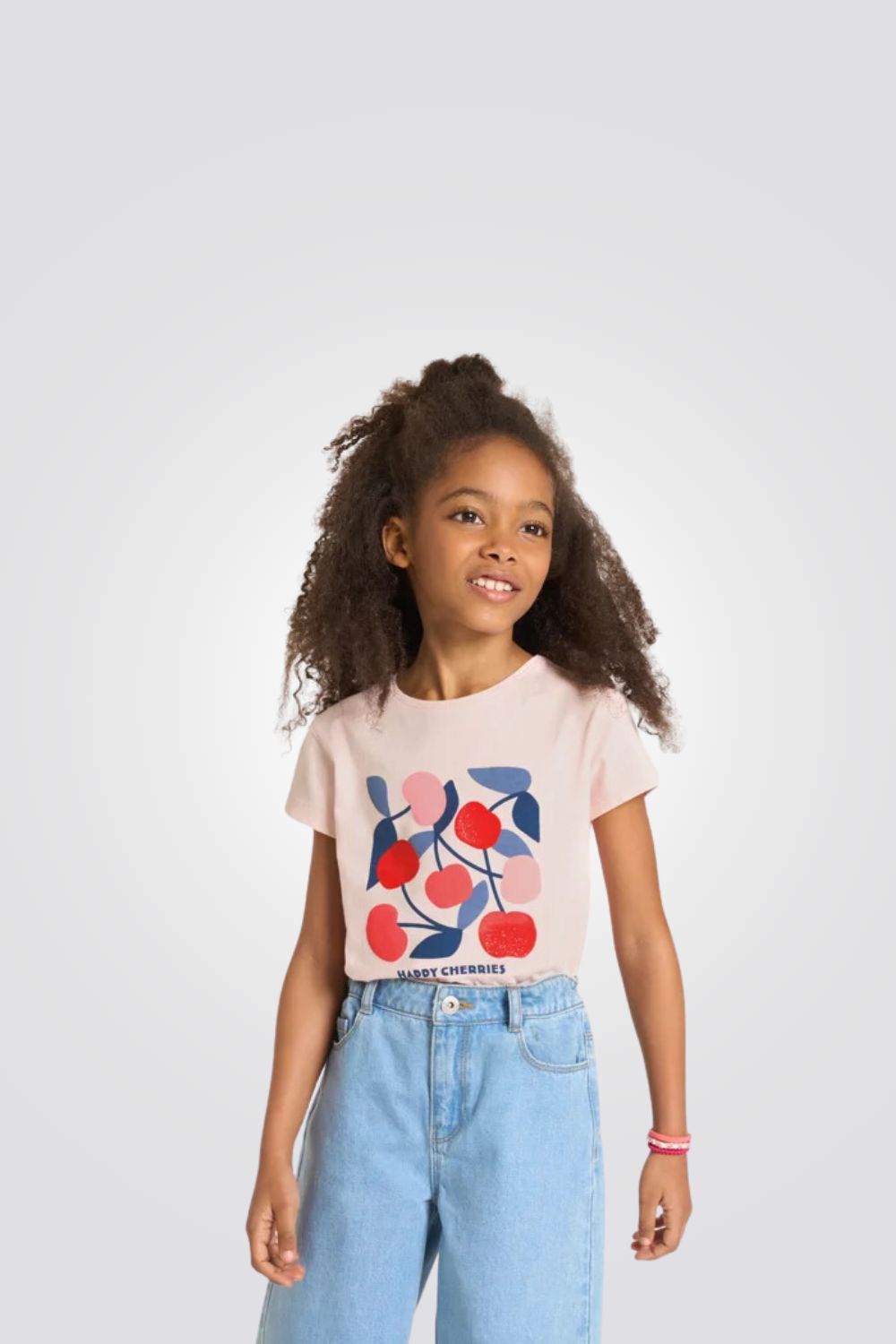 טישירט לילדות בצבע ורוד עם הדפס דובדבנים