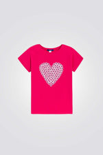 טישירט לילדות בצבע ורוד פוקסיה עם הדפס לב פרחוני