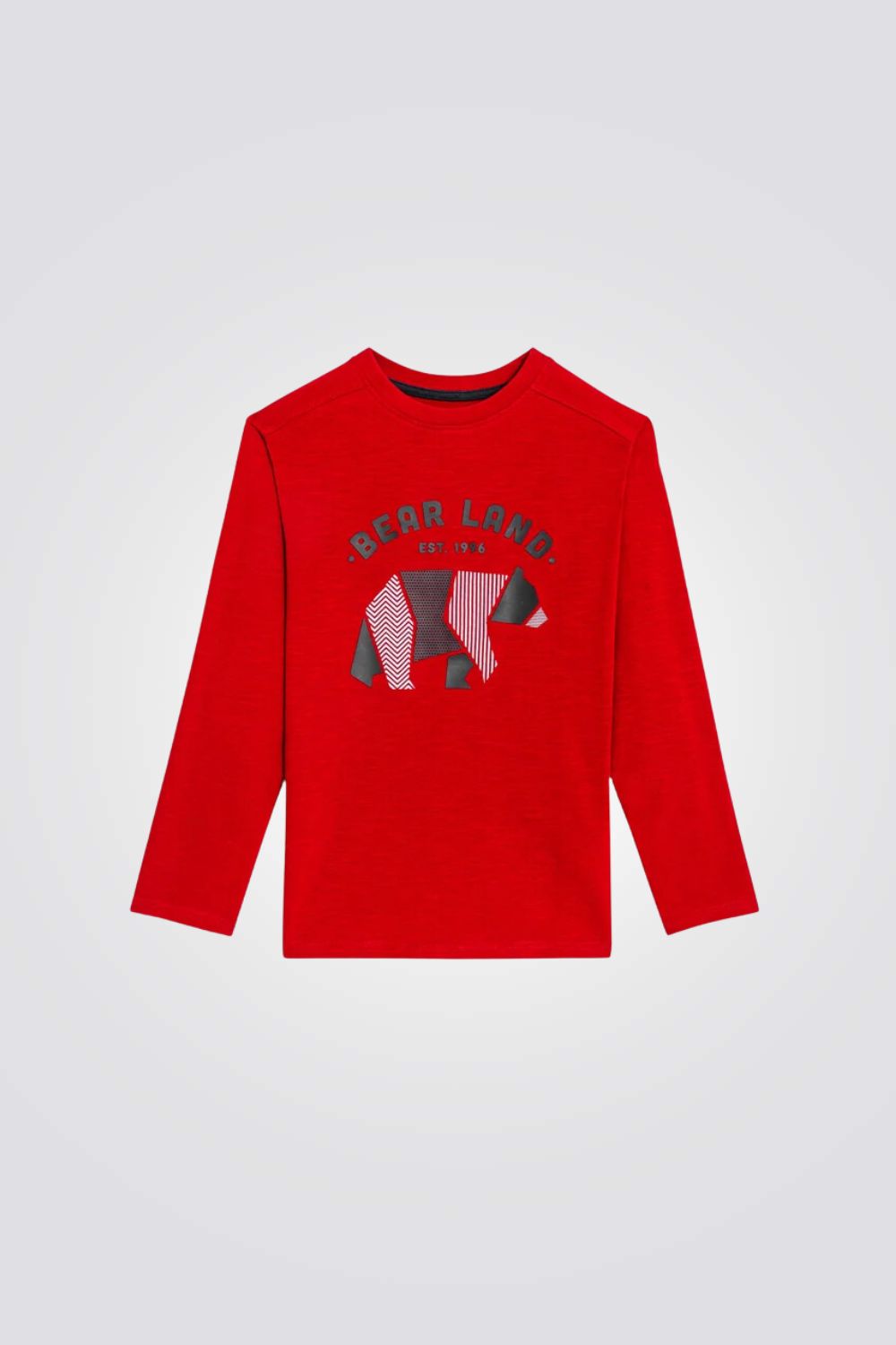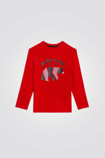 טישירט ילדים שרוול ארוך בצבע אדום עם הדפס דוב