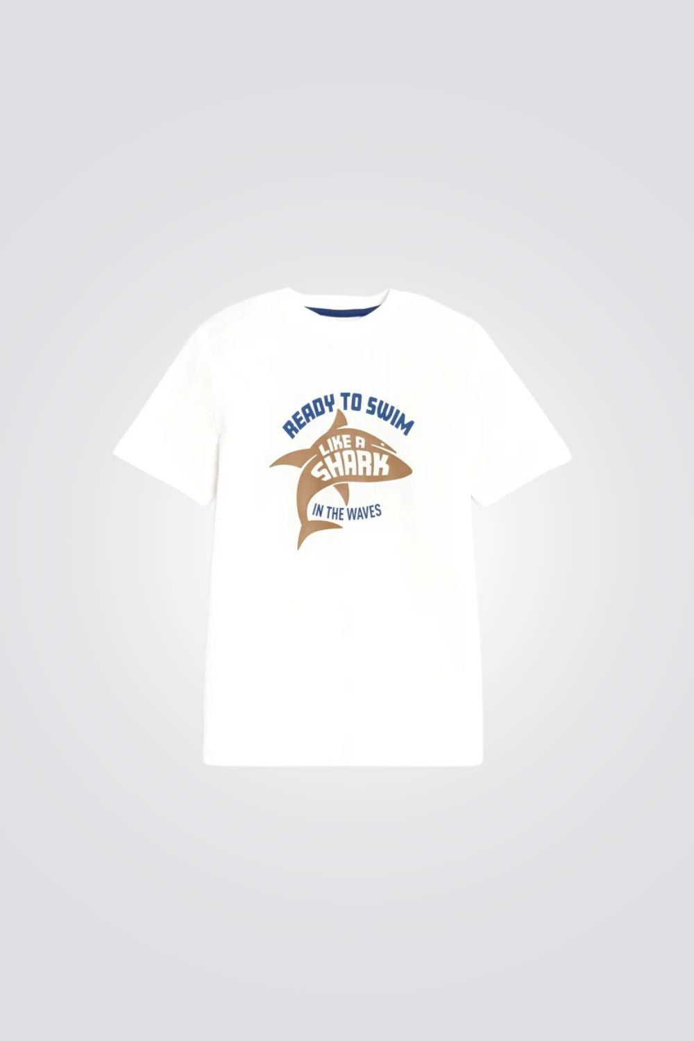טישירט לילדים בצבע לבן עם הדפס כריש