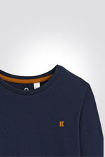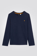 טישירט ילדים שרוול ארוך מבית המותג OKAIDI ,בצבע כחול,20% חומרים ממוחזרים בד עם מגע רך ונעים