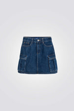 חצאית ג'ינס לילדות מבית המותג OKAIDI, בצבע כחול ,בגזרה ישרה ונוחה, עם כיסי קרגו , כיסים צדדיים ולולאות לחגורה, סגירת רוכסן וכפתור.