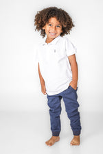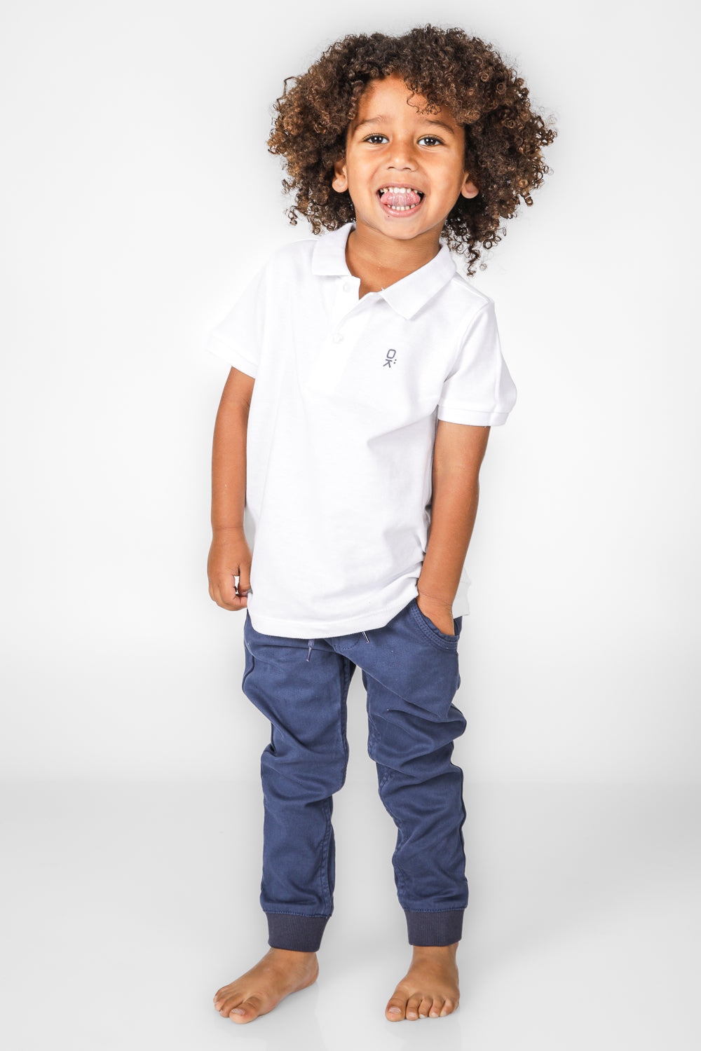 חולצת פולו קלאסית בצבע לבן לילדים של המותג OKAIDI אוקיידי. נעימה ואלגנטית. הרכב