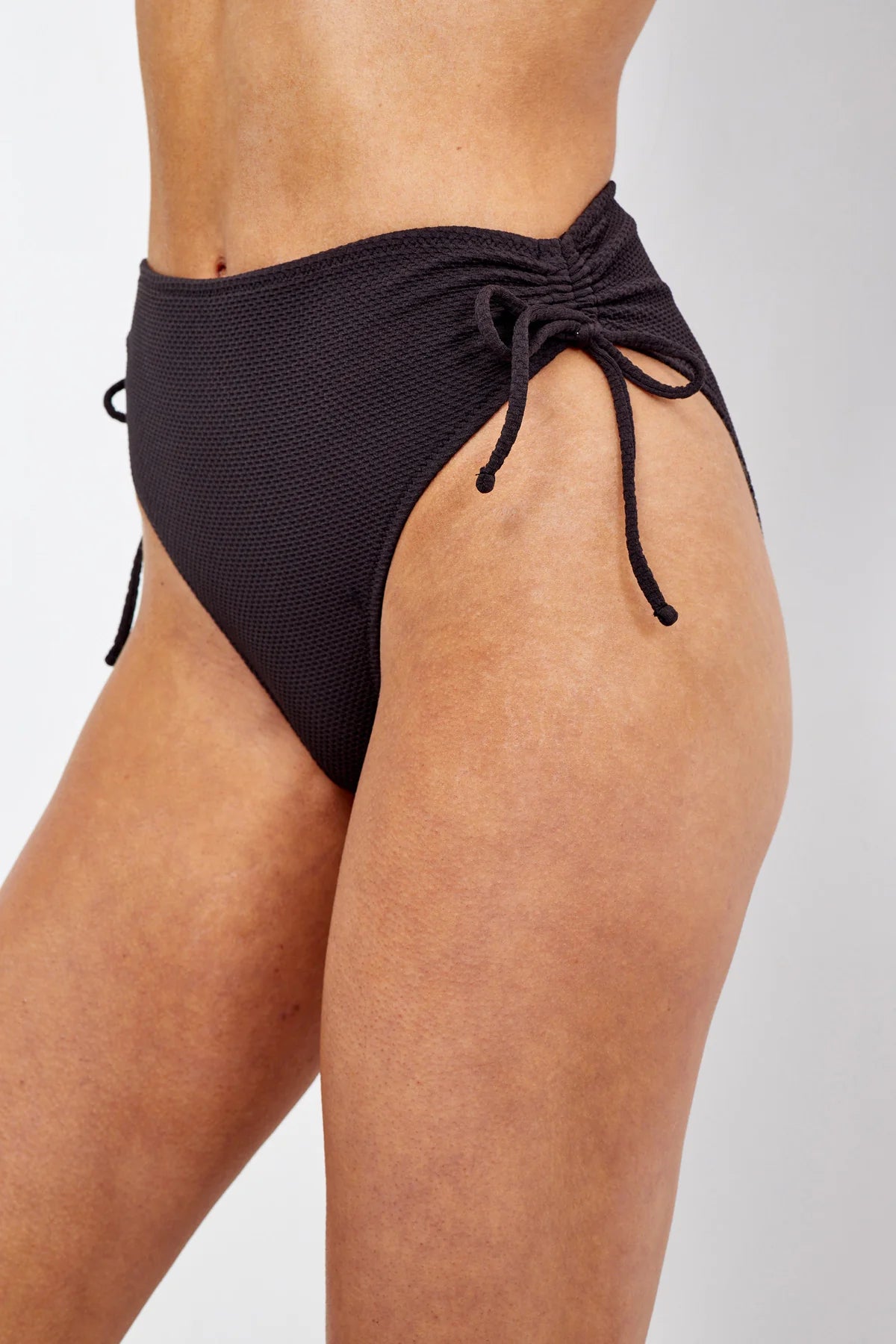 תחתון ביקיני מבית המותג PILPEL,תחתון ביקיני בגזרה גבוהה מבד טקסטורה עם רצועות קשירה בצד.