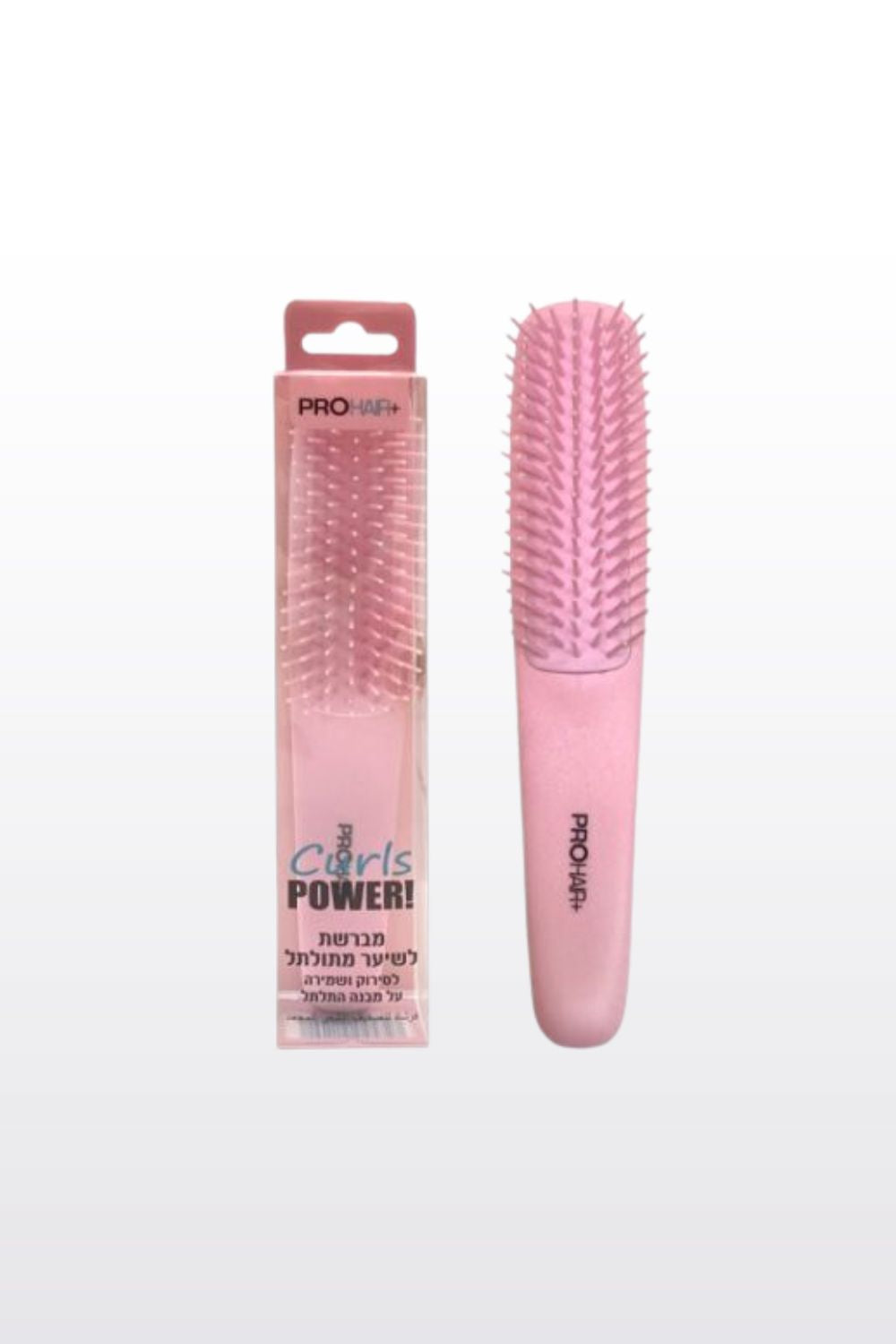 מברשת לסירוק קל מבית המותג PRO HAIR, מתאימה לשיער מתולתל לסירוק ושמירה על מבנה התלתל, בעלת שיניים מרווחות וארוכות.