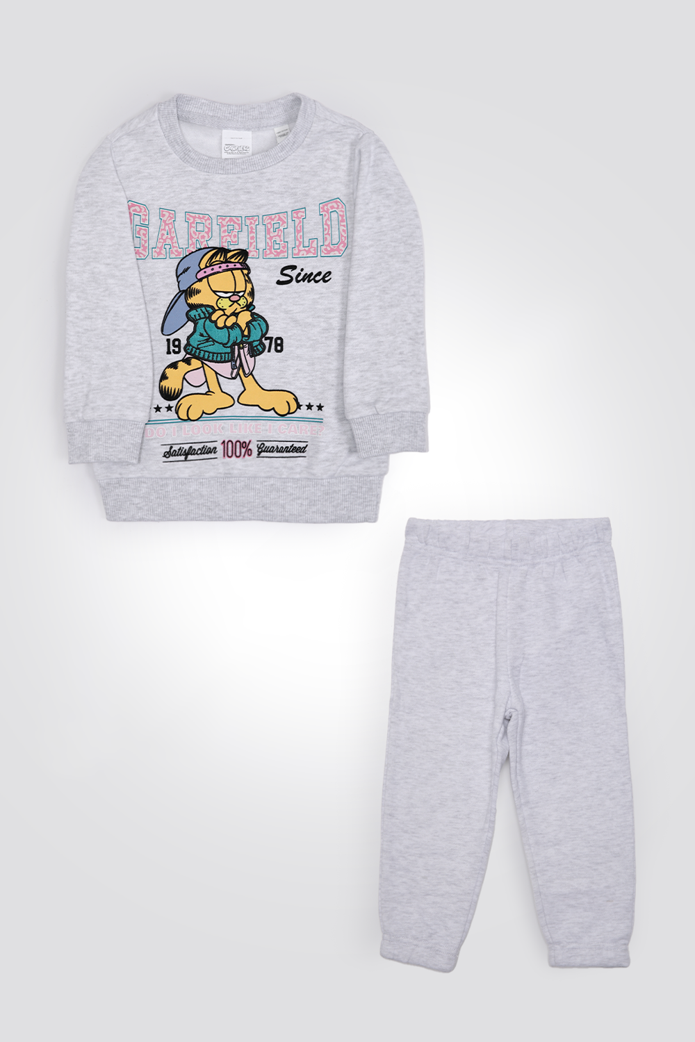 סט פיג’מה לנערות מבית המותג DELTA העשויה מבד פוטר רך ומחמם עם הדפס מדליק של גארפילד. חולצה עם צווארון עגול ושרוולים ארוכים עם סיומת מנג’ט ומכנסיים ארוכים עם גומי במותניים וסיומת מנג’ט.