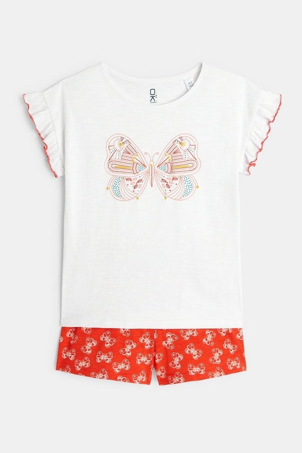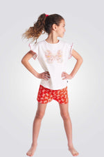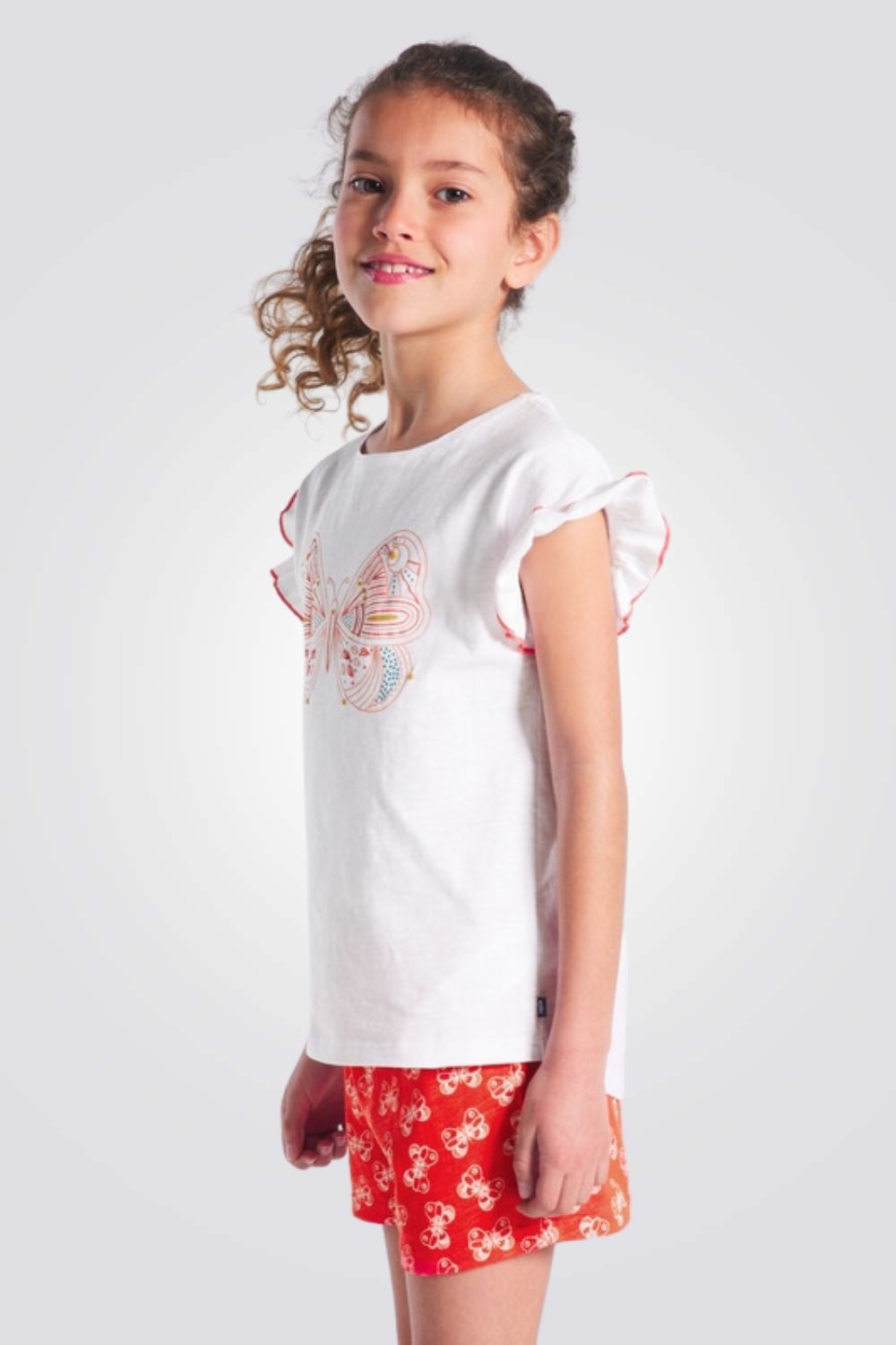סט פיג'מה קצרה לילדות בהדפס פרפרים