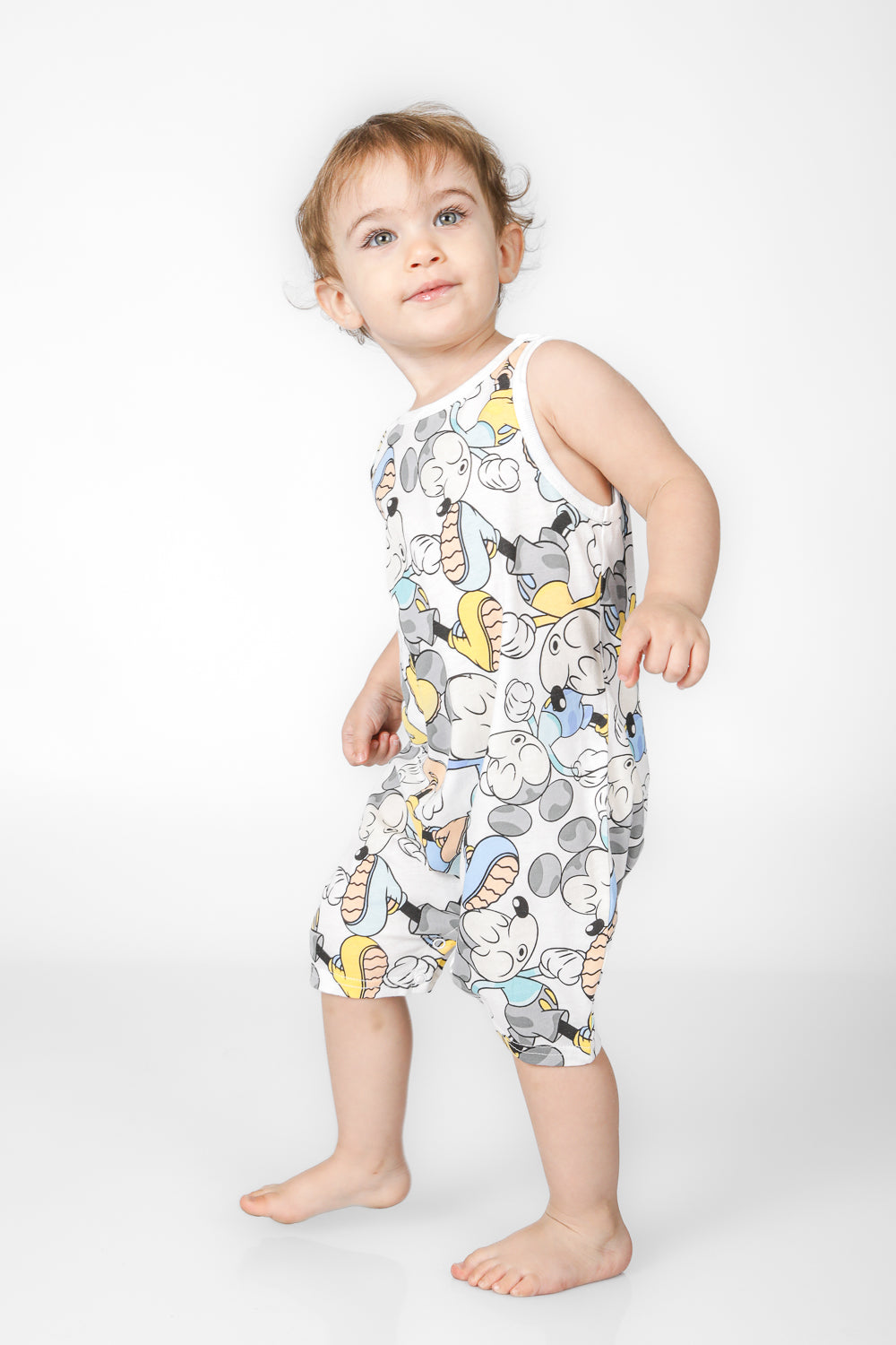 אוברול פיג’מה MICKEY בצבע לבן לתינוקות