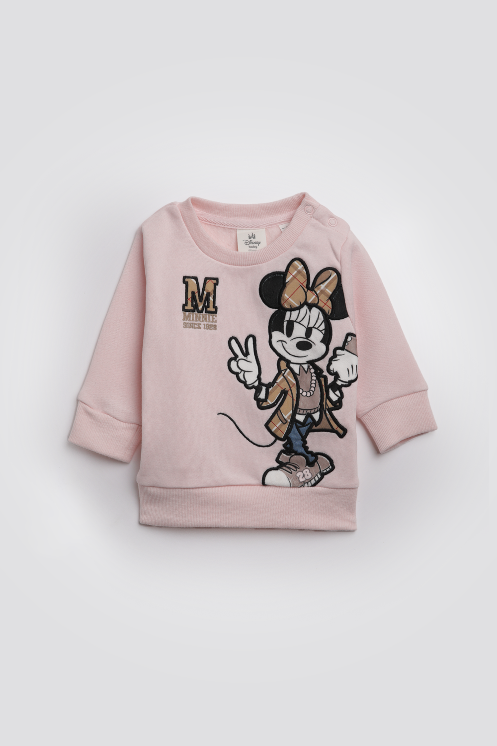 סט פיג'מה ארוך לתינוקות מבית המותג DELTA העשוי מבד פוטר רך ונעים במוטיב מדליק של מיני מאוס. חולצה עם שרוולים ארוכים, מפתח צוואר עגול וסיומת מנג’ט ומכנסיים ארוכים תואמים עם גומי במותניים וסיומת מנג’ט. במידות NB ו-0-3 חודשים המכנסיים עם רגליות.
