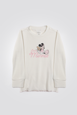 סט פיג'מה ארוכה לילדות מבית המותג DELTA העשוי ממבד בטקסטורת ריב נעימה לעונת המעבר במוטיב מיני מאוס. חולצה עם צווארון עגול ושרוולים ארוכים ומכנסיים ארוכים עם גומי במותניים וסיומת מנג’ט. הסט מגיע עם 2 גומיות לשיער.
