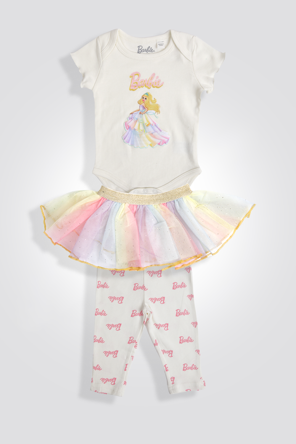 סט פיג'מה לתינוקות בנות BARBIE עם חצאית בצבע קרם