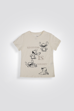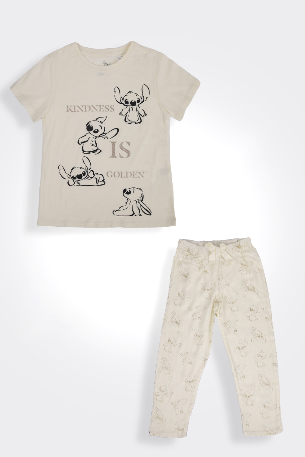סט פיג'מת מעבר מבית המותג DELTA עשויה מבד אריג דק ונעים במיוחד בהדפס של סטיץ’. חולצה עם צווארון עגול ושרוולים קצרים ומכנסיים ארוכים תואמים בגזרה ישרה עם גומי במותניים.