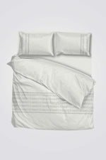 סט מצעים דגם Adi מבית Homestyle. סט מצעים מלא מבד סאטן בצבע לבן עם תחרה איכותית.