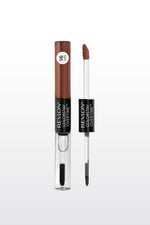 שפתון עמיד וליפ גלוס מבריק במוצר אחד! עמידות גבוהה ל-16 שעות של צבע חושני על השפתיים.. ליפ גלוס שקוף ומלא ברק ולחות מועשר בתמציות קמומיל וסויה מרגיעות משלים את איפור וטיפוח השפתיים למראה זוהר במשך כל שעות היום ללא צורך בחידוש השפתון. עמיד, אינו נוזל או נמרח, אינו מלכלך ומכתים. שפתון דו כווני: מצד אחד שפתון עמיד מט ומהצד השני ליפ גלוס מבריק שקוף להשלמת המראה הזוהר.