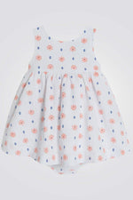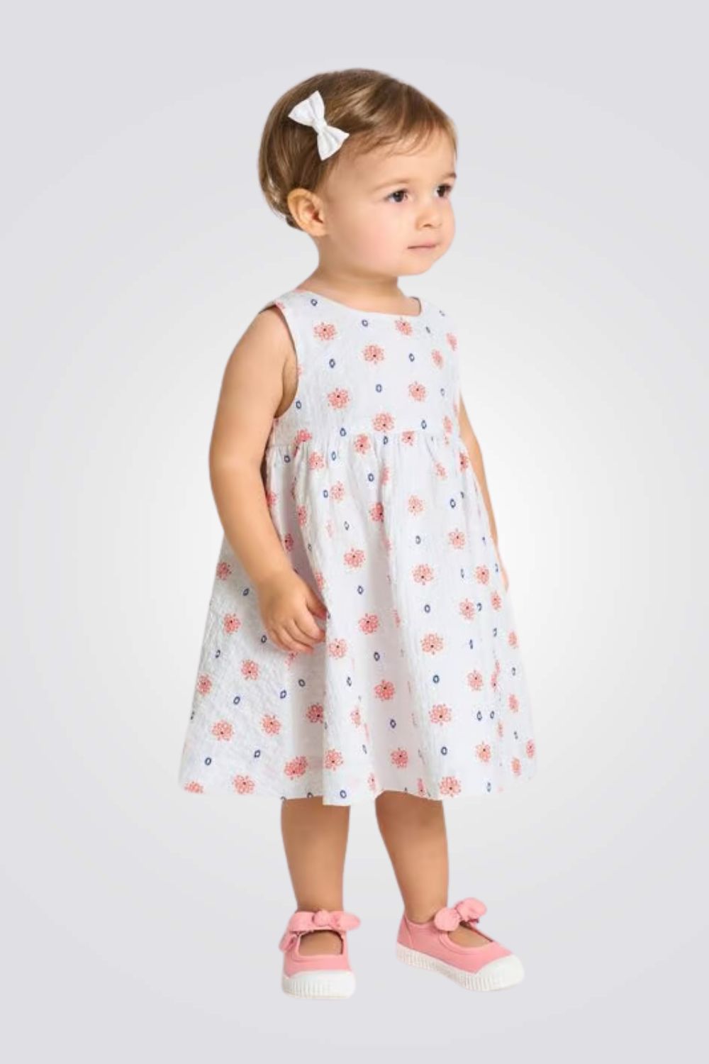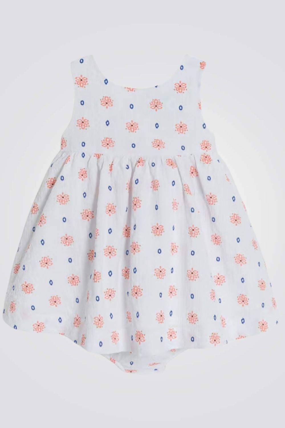 שמלה פרחונית לתינוקות מבית המותג OBAIBI , ללא שרוולים, סגירת טיקטקים בחלק התחתון ובגזרה רחבה.