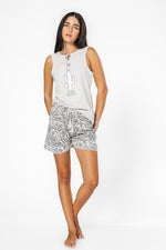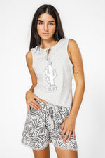 סט פיג'מה קצרה לנשים אפורה הדפס קקטוס